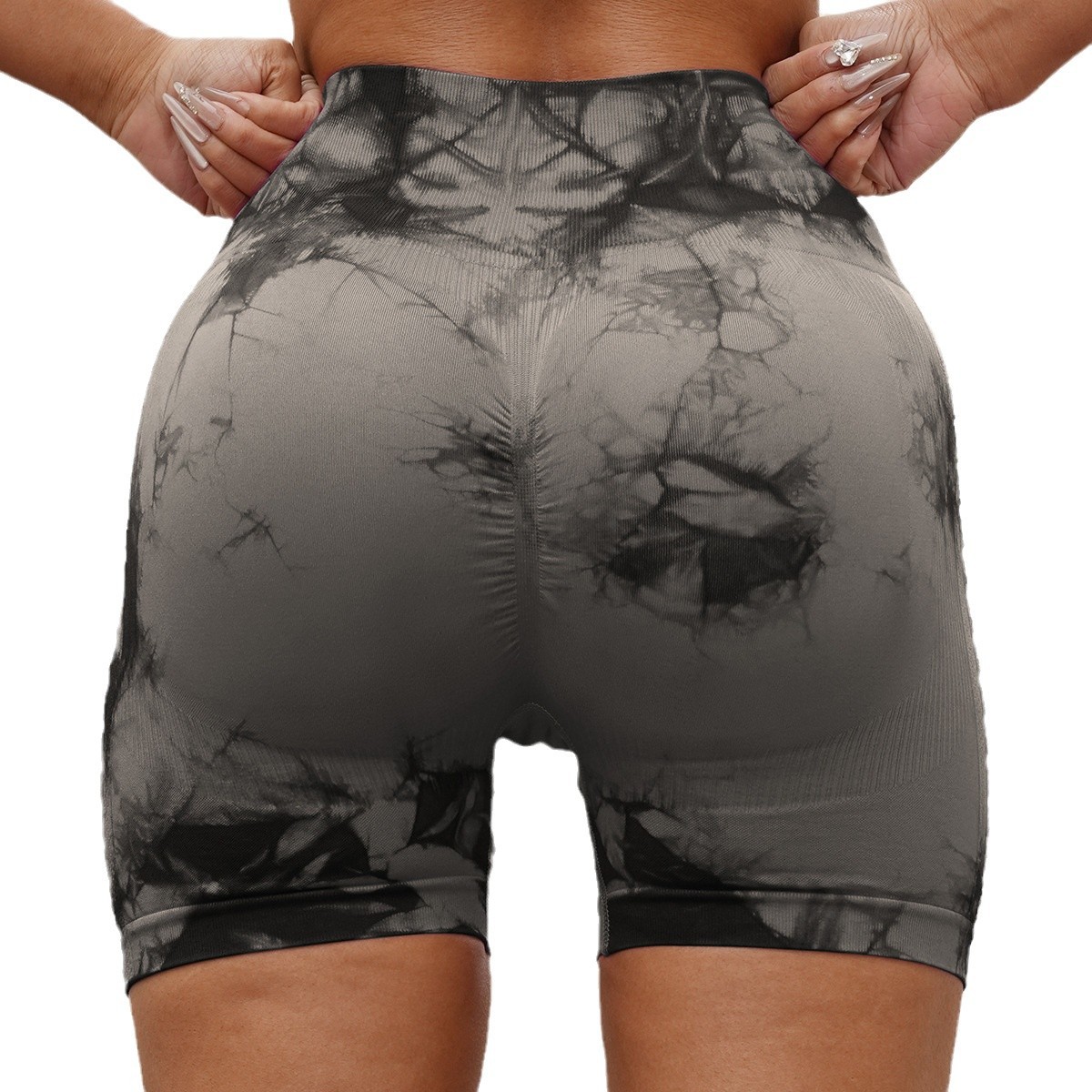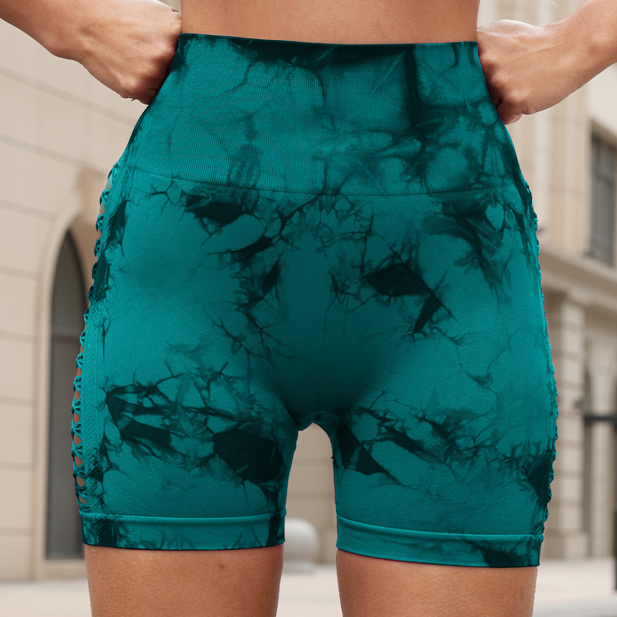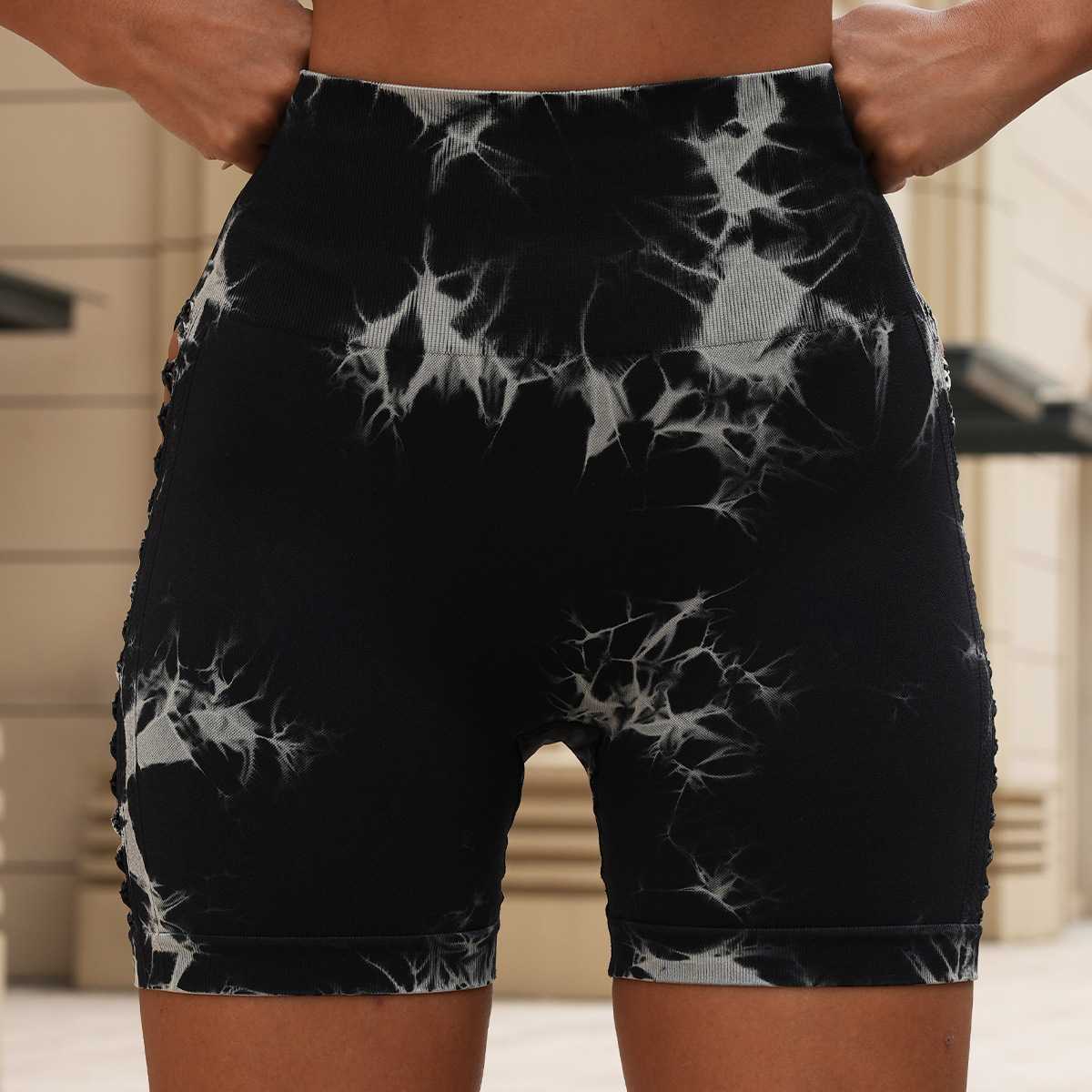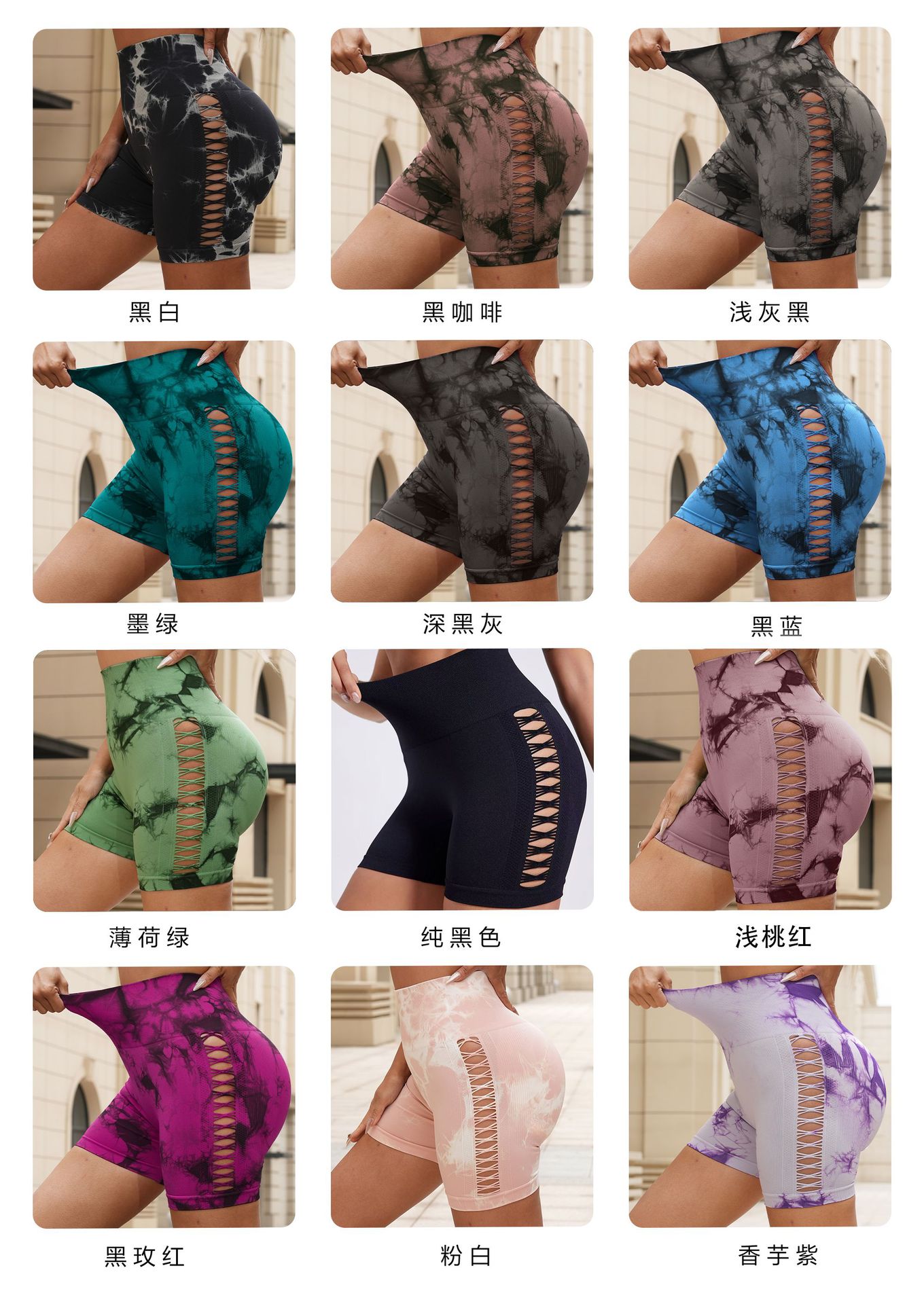 欧美女士短裤侧镂空扎染瑜伽裤高腰提臀运动瑜伽修身打底瑜伽短裤