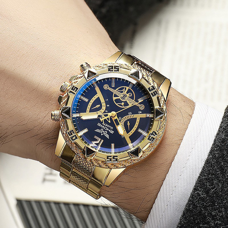 跨境爆款时尚蓝光大表盘金表男士手表男表石英表钢带腕表厂家现货