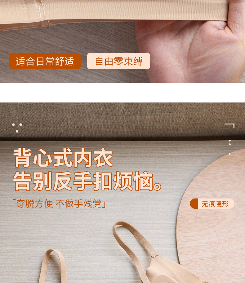 粉底液隐形无痕内衣原版不透舒适透气无钢圈美背抹胸果冻运动文胸