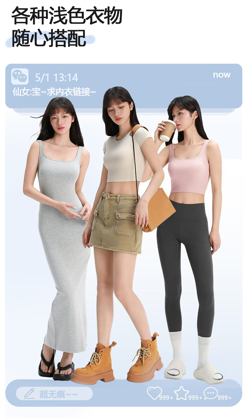 粉底液超隐形粉底液隐形无痕内衣无尺码舒适美背透气软支撑文胸女