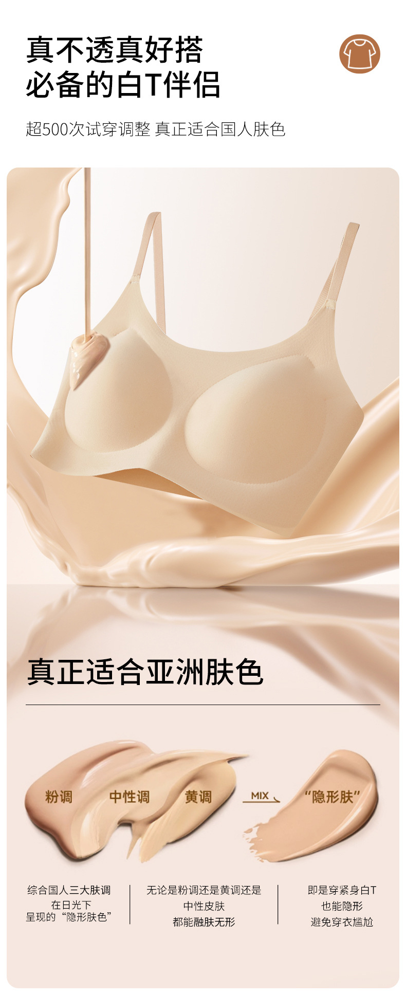 特调粉底肤无痕隐形内衣夏薄款舒适聚拢防下垂固定杯透气美背吊带