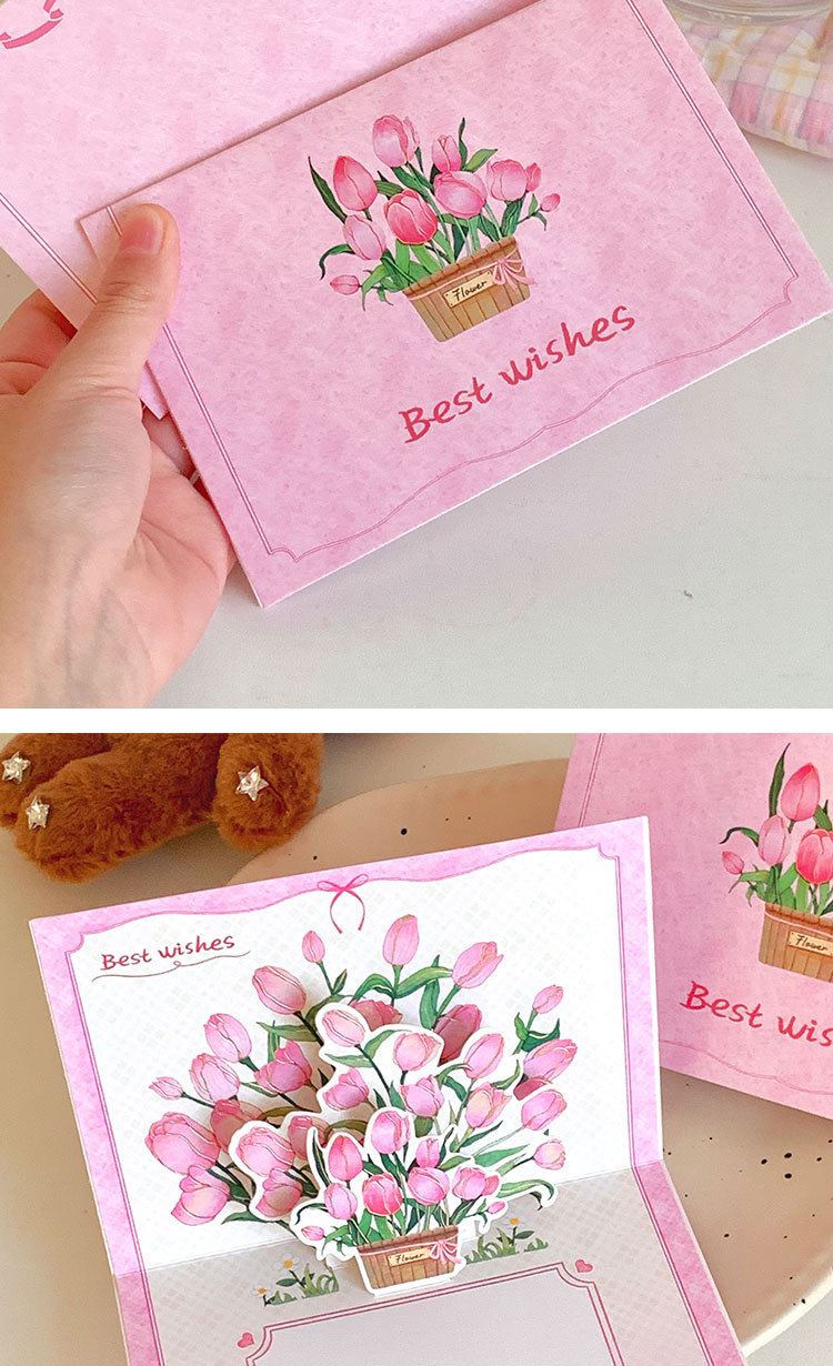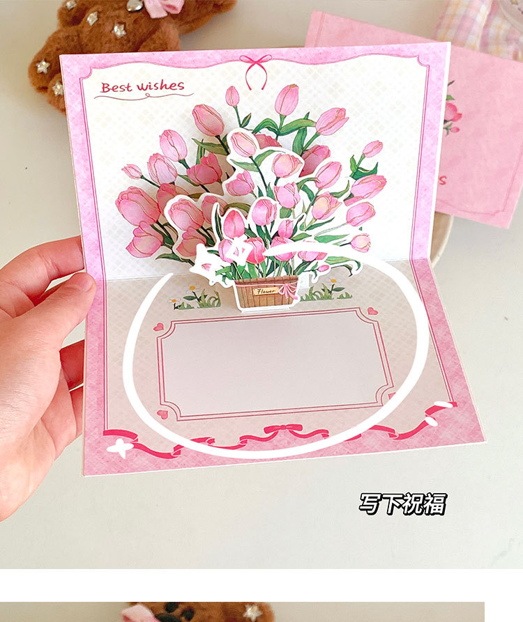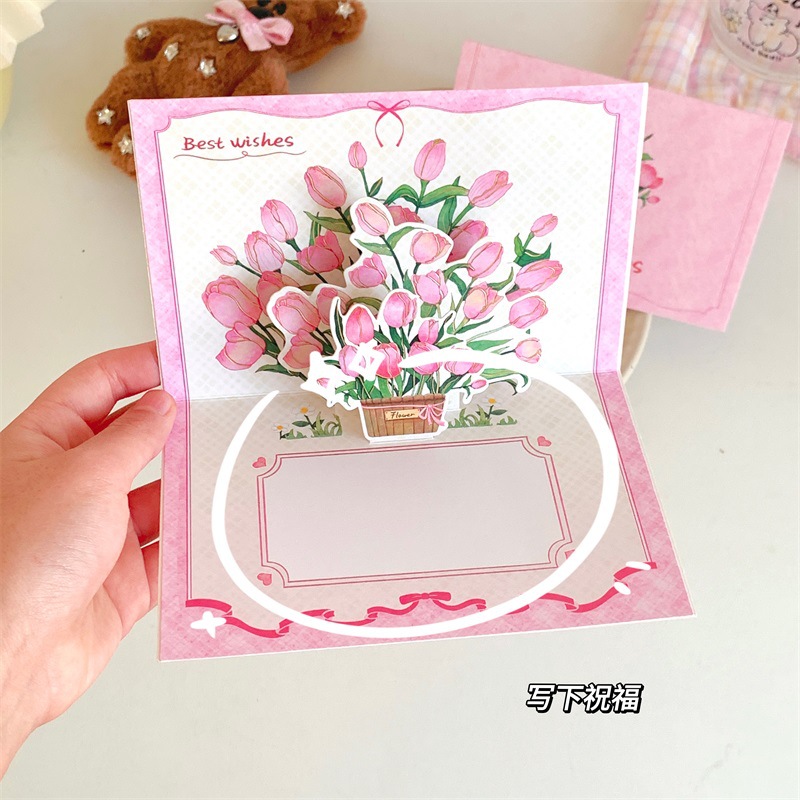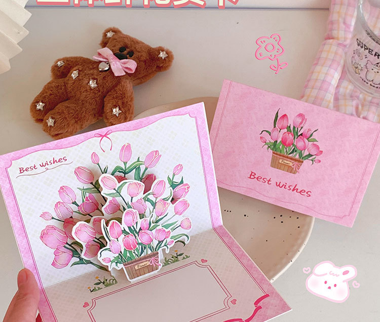 圣诞节ins商务郁金香生日礼物创意可爱贺卡立体贺卡蛋糕祝福卡
