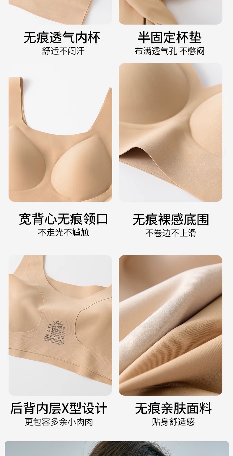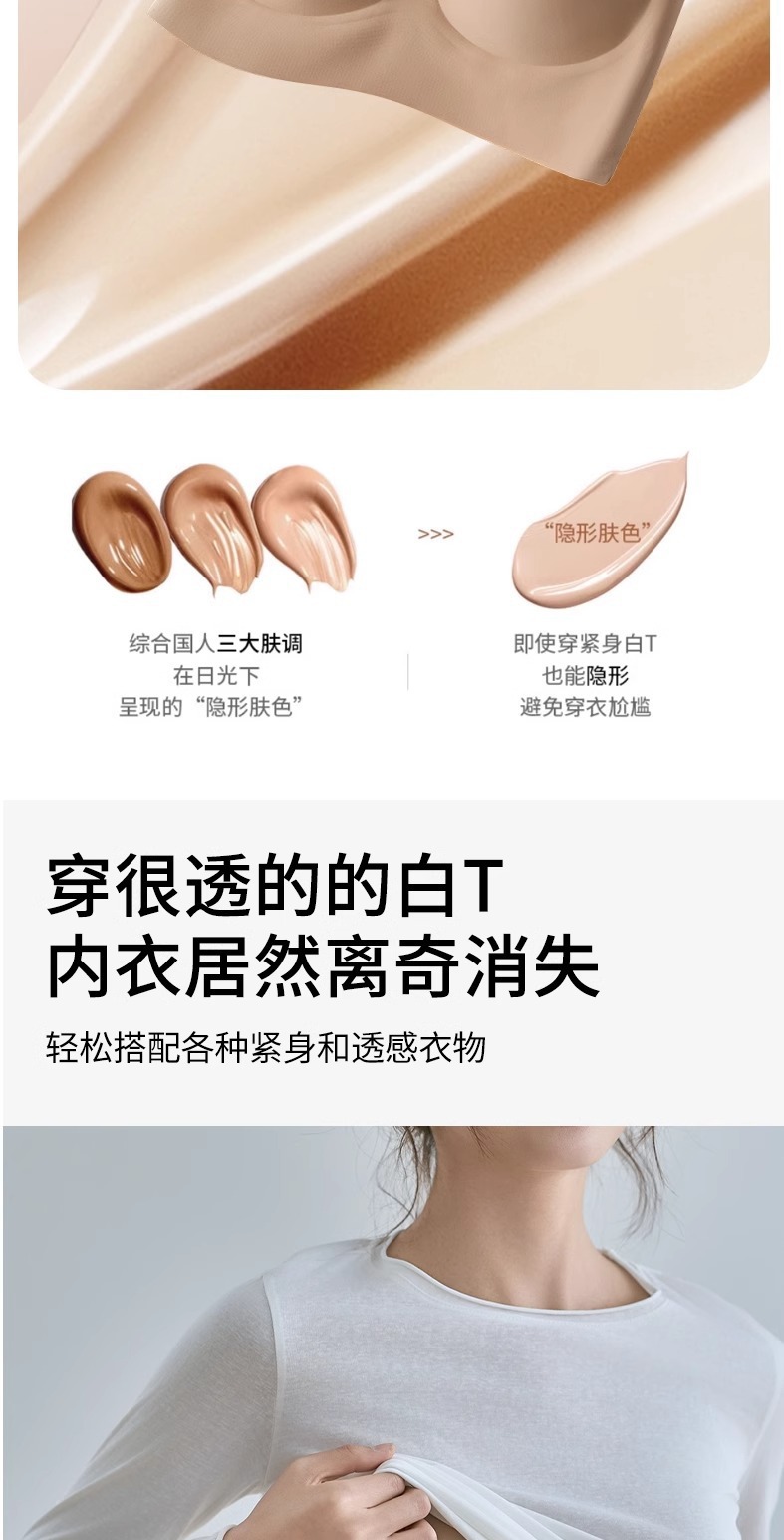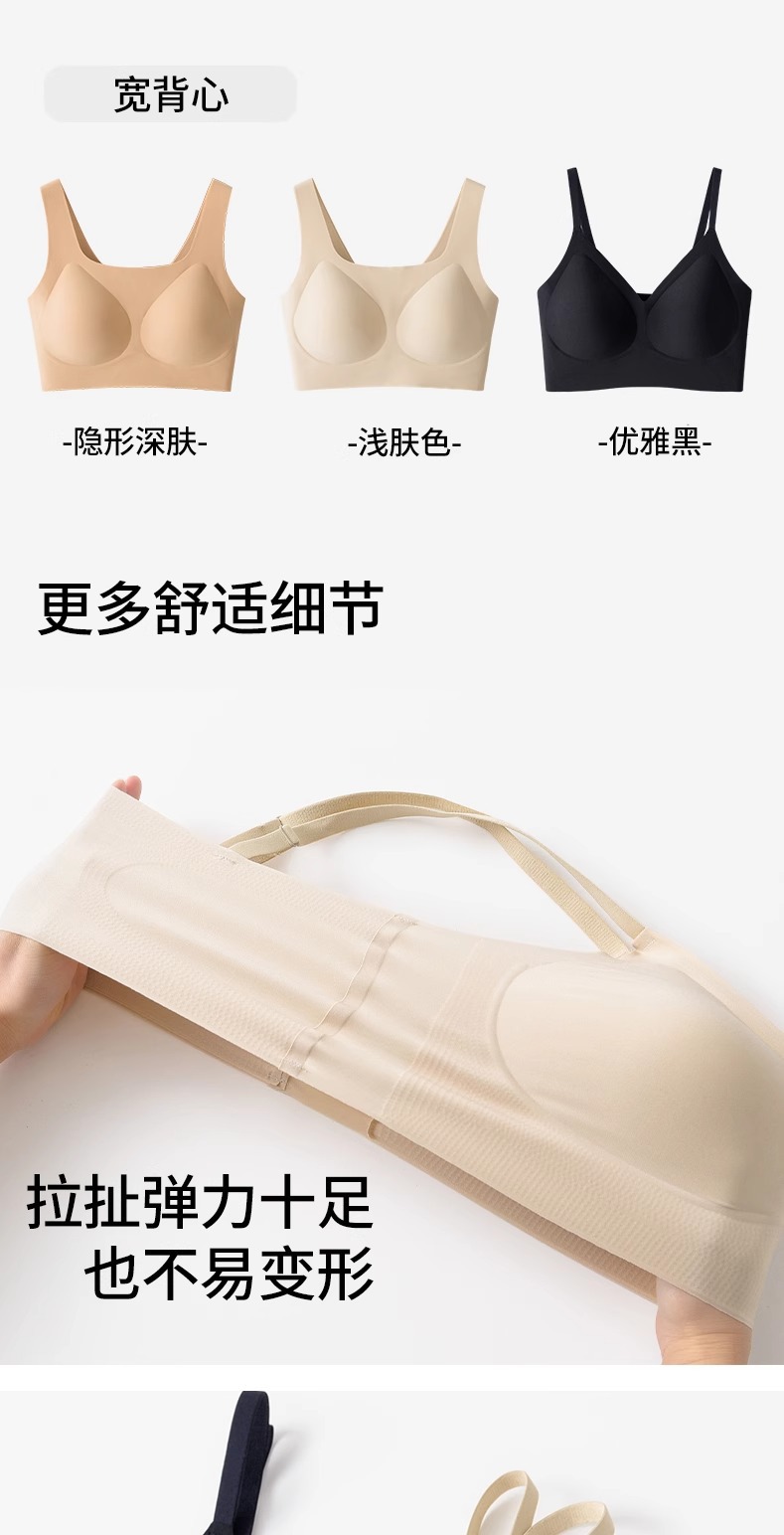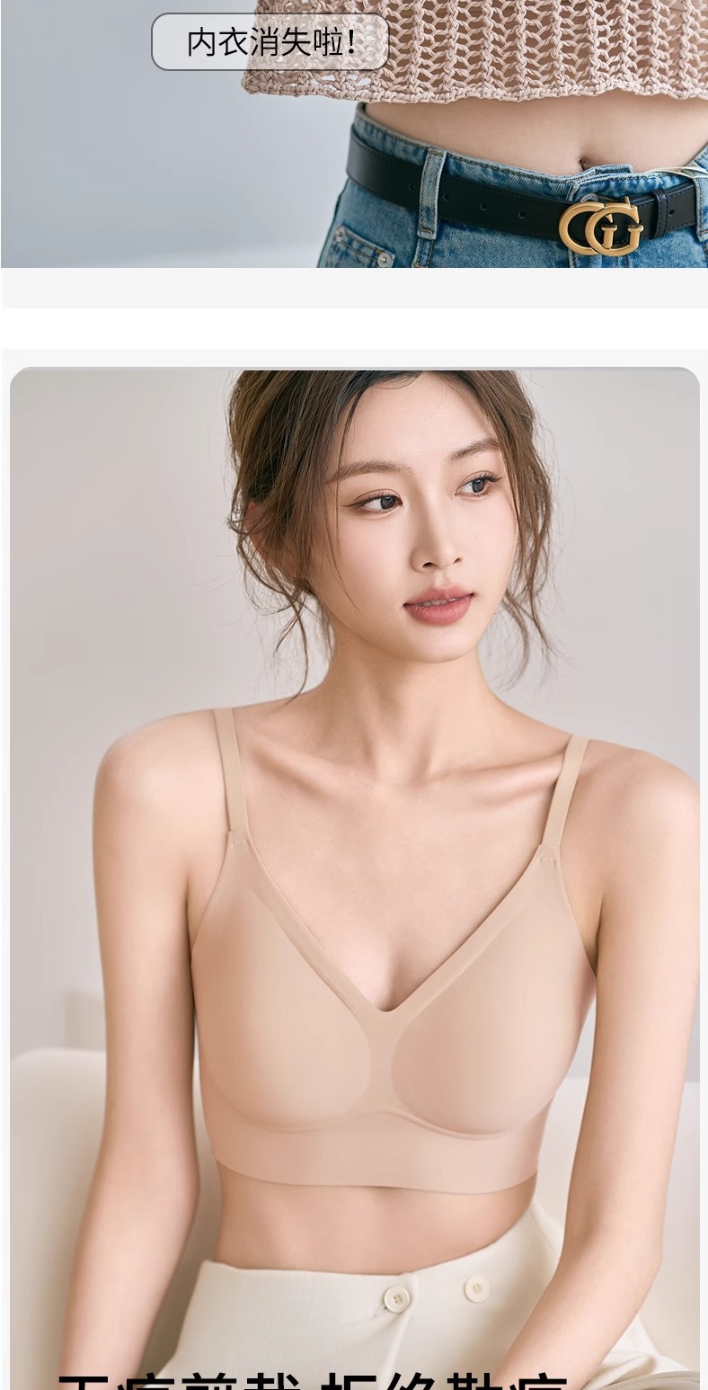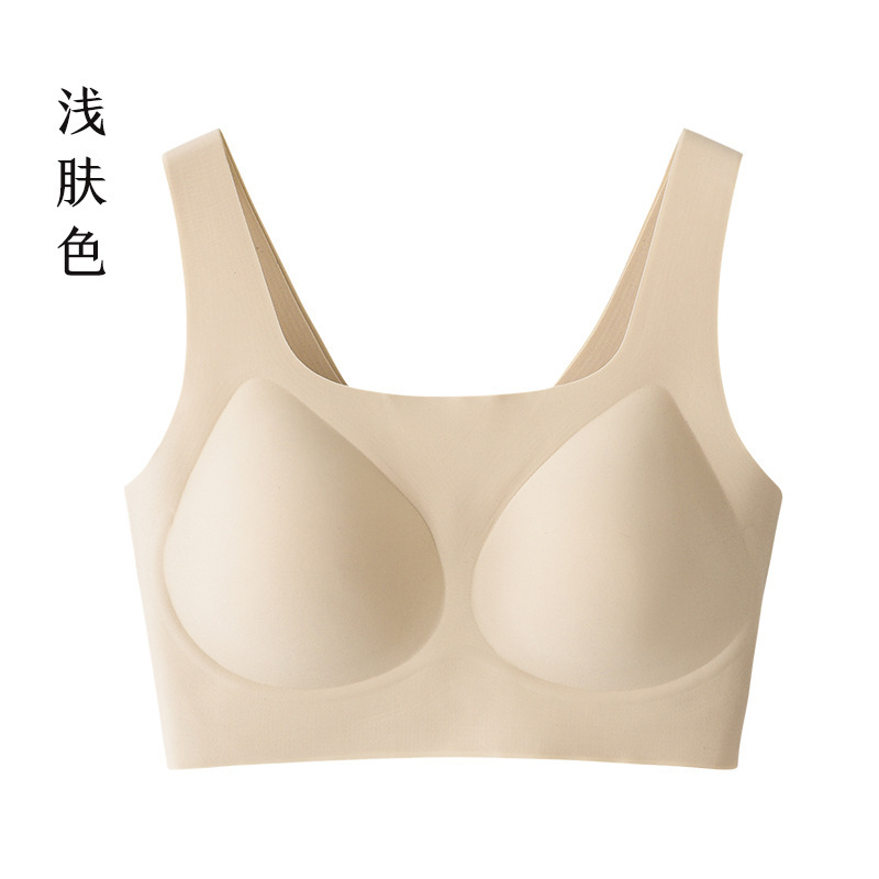 无痕粉底液内衣女大胸显小隐形聚拢上托收副乳防下垂背心式文胸薄