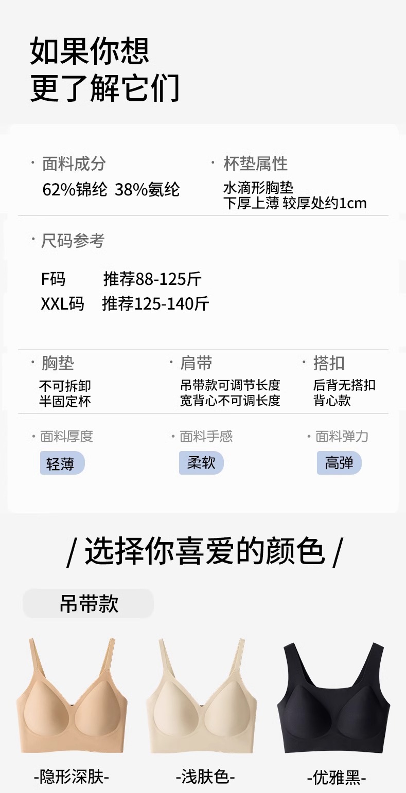 | free size [40.00 kg-60.00 kg] abc cup(均码【80-120斤】ABC通杯) | USD $0.0 | 10000 piece available |