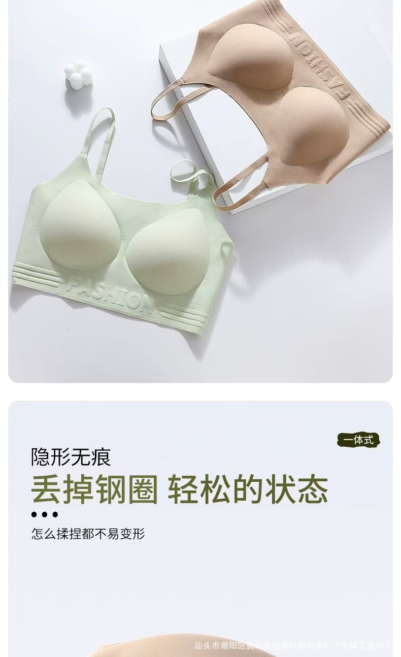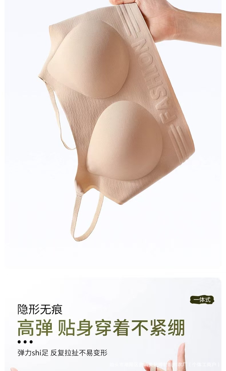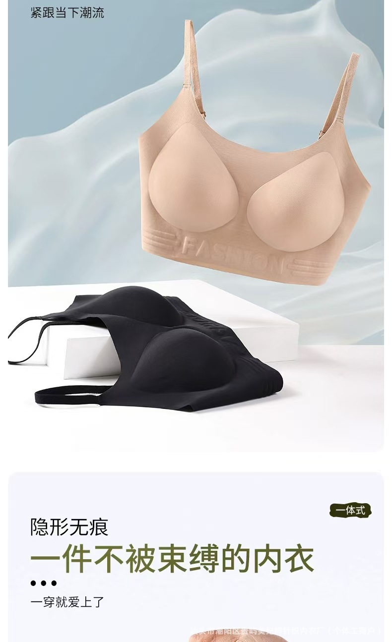 新品粉底液内衣无痕舒适美背百搭一体式带胸垫穿衣隐形文胸无钢圈