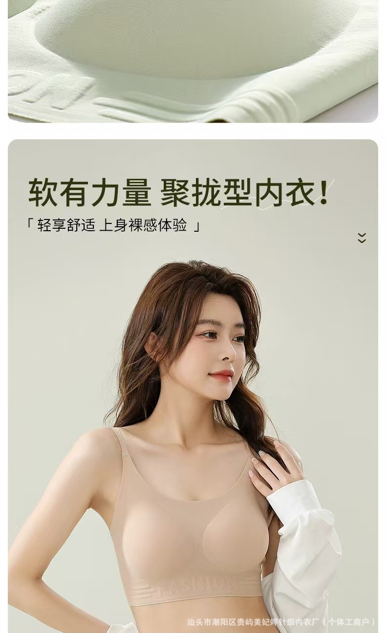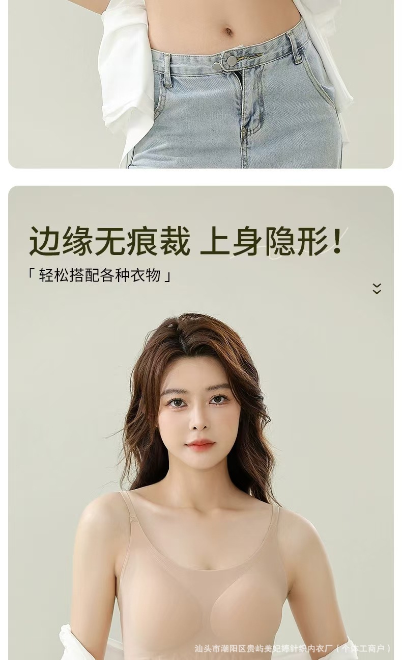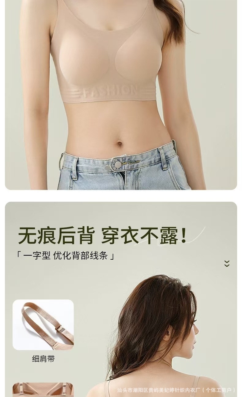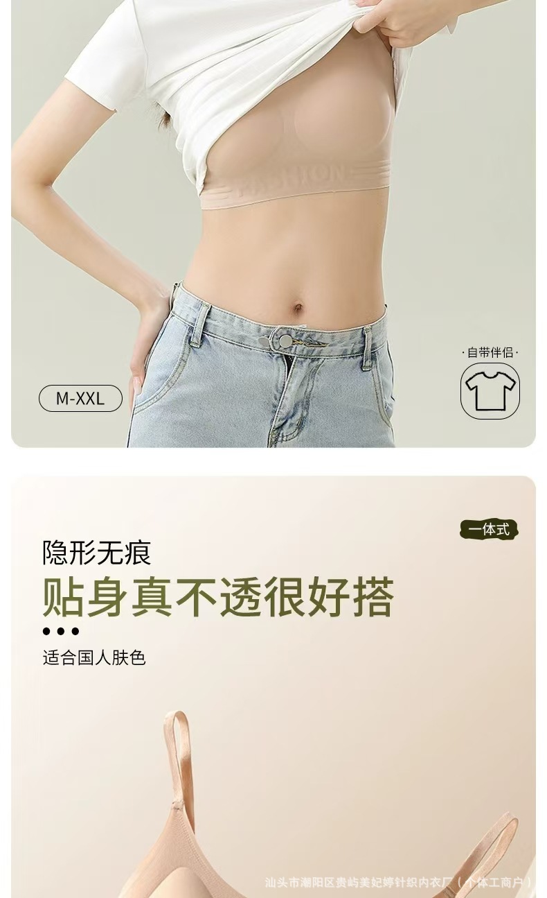 新品粉底液内衣无痕舒适美背百搭一体式带胸垫穿衣隐形文胸无钢圈