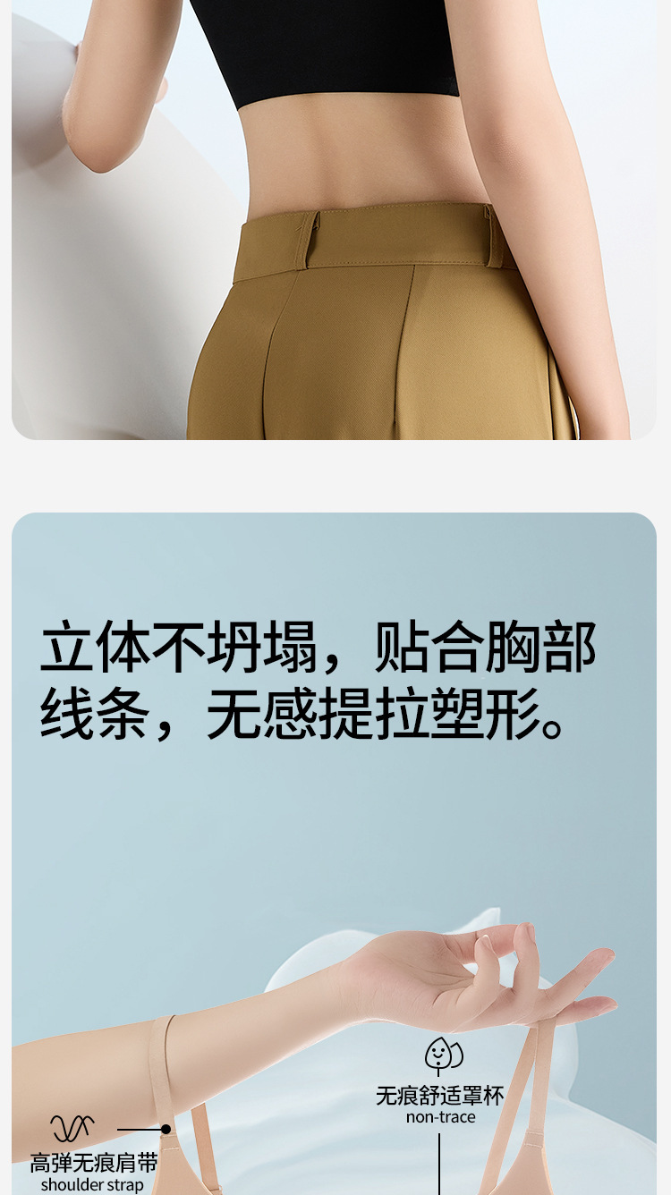 隐形无痕美背薄款透气粉底液内衣无钢圈聚拢上托收副乳舒适文胸罩