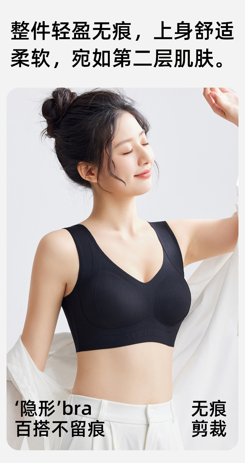 无痕粉底液内衣女软支撑提拉聚拢大胸显小收副乳大码女士文胸罩