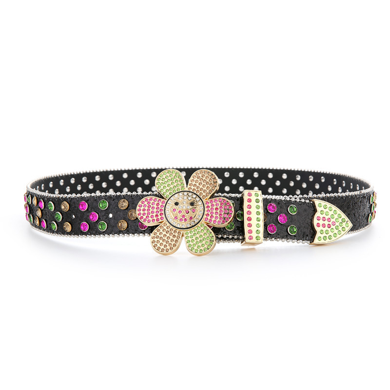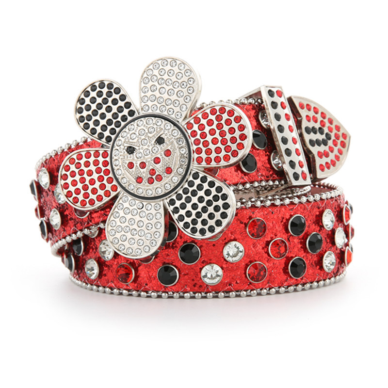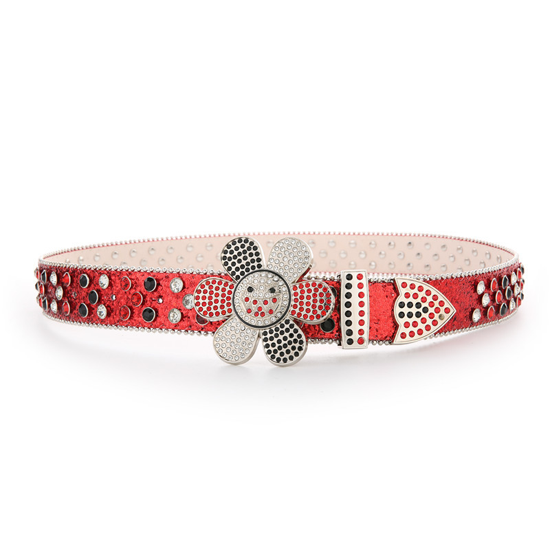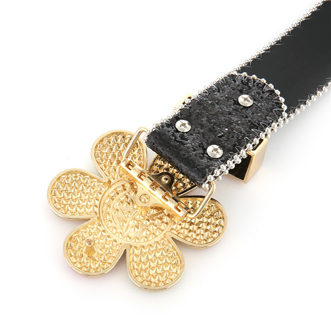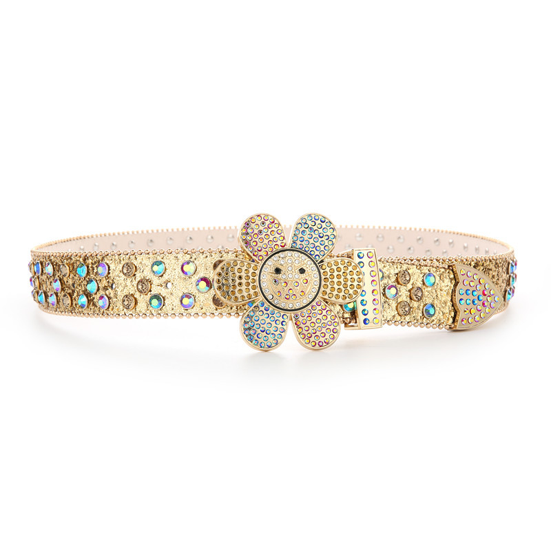 欧美花瓣腰带女士女款水钻百搭水钻满钻镶钻PU宽水晶带钻皮
