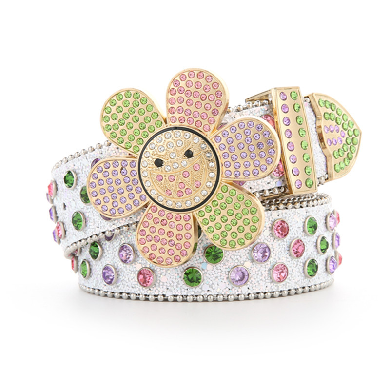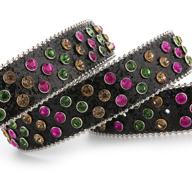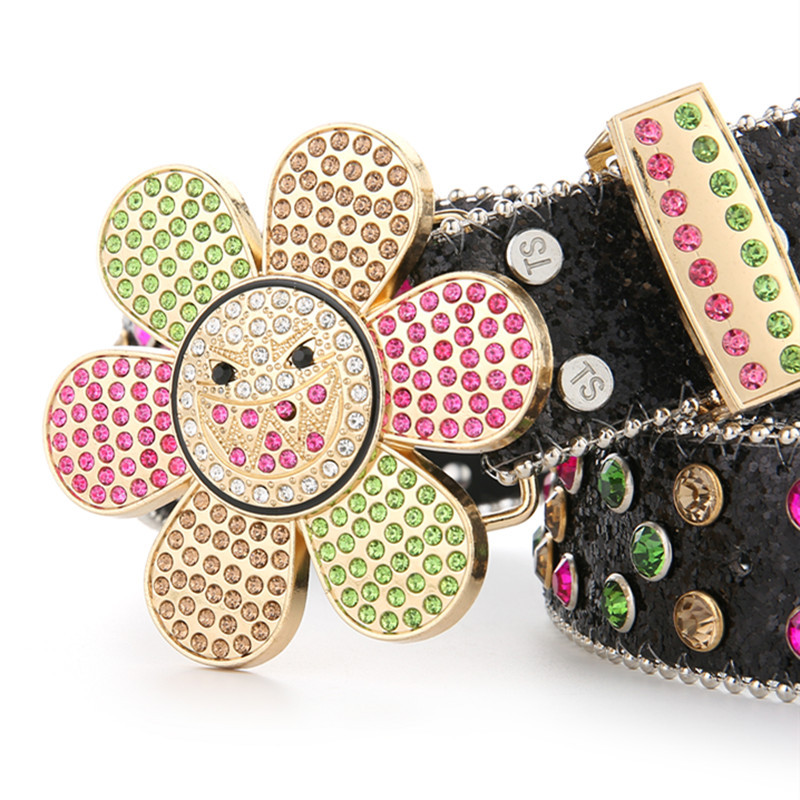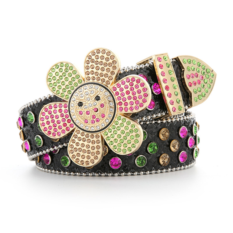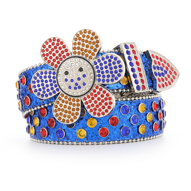 欧美花瓣腰带女士女款水钻百搭水钻满钻镶钻PU宽水晶带钻皮