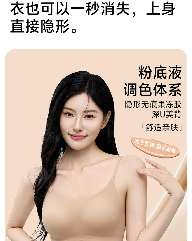 原版韩国外扩无痕粉底液文胸女隐形不透一体胸罩背心舒适美背内衣