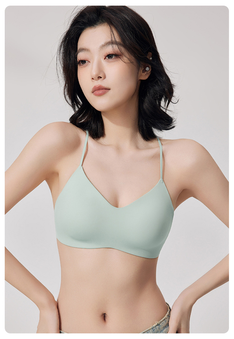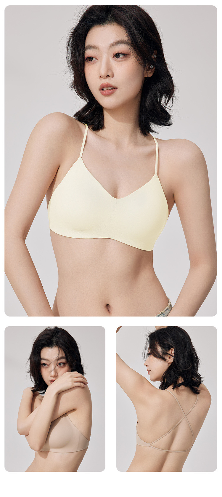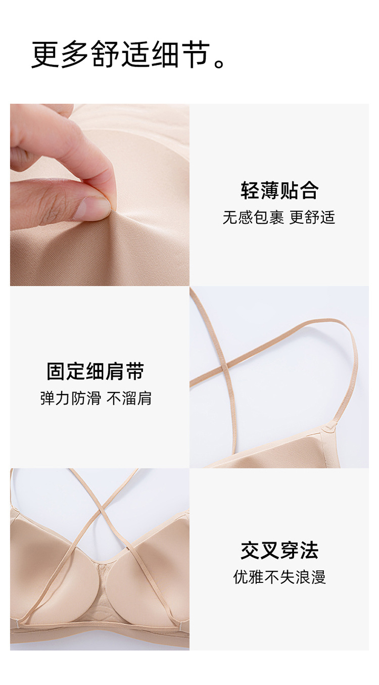 2025新款无痕粉底液隐形美背内衣女小胸聚拢细肩带无钢圈文胸套装