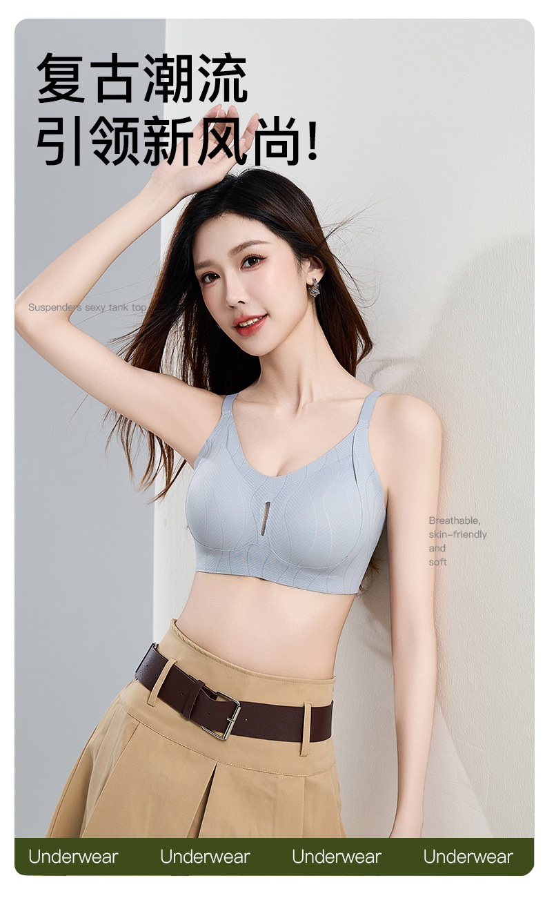 无痕透气细肩带排扣内衣上托聚拢镂空性感女士文胸无钢圈高级内衣