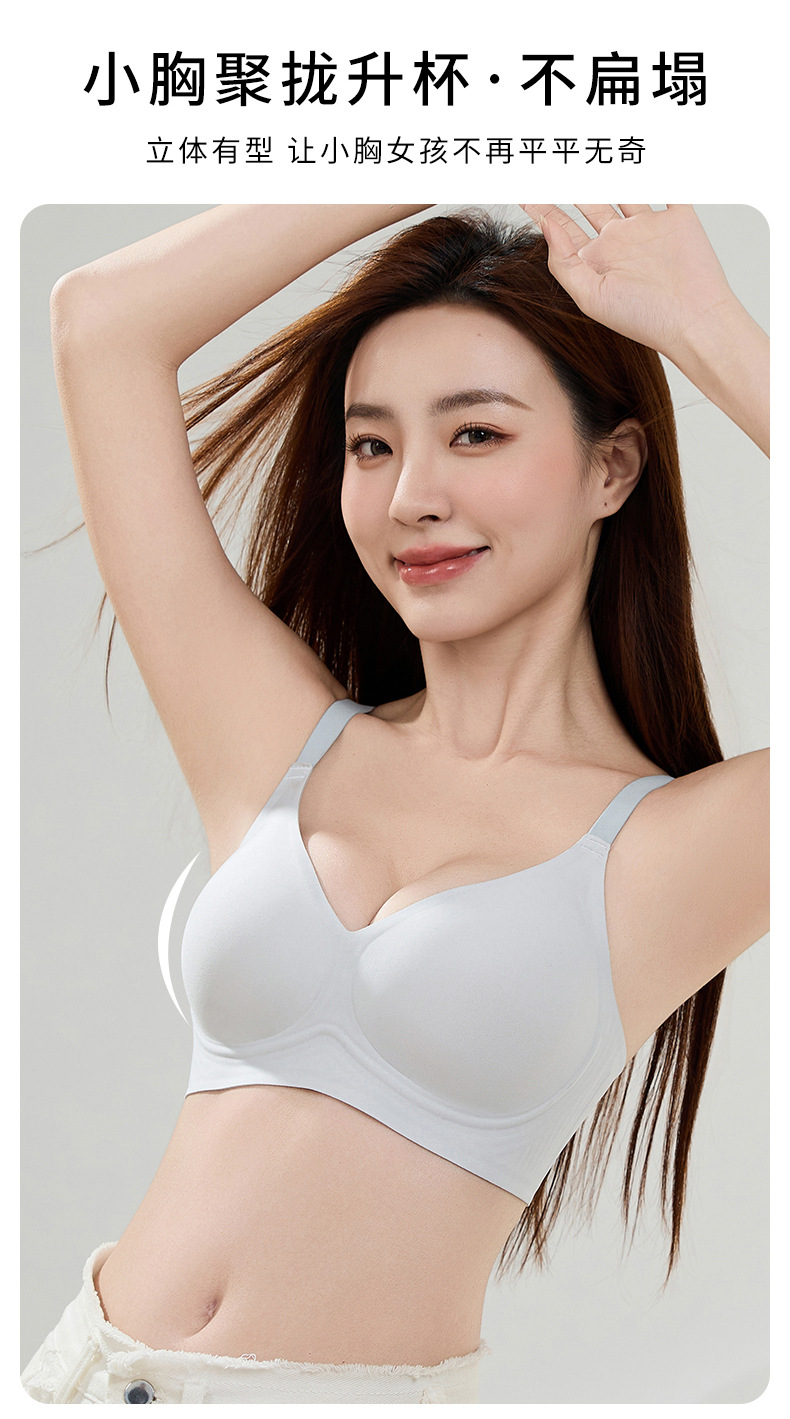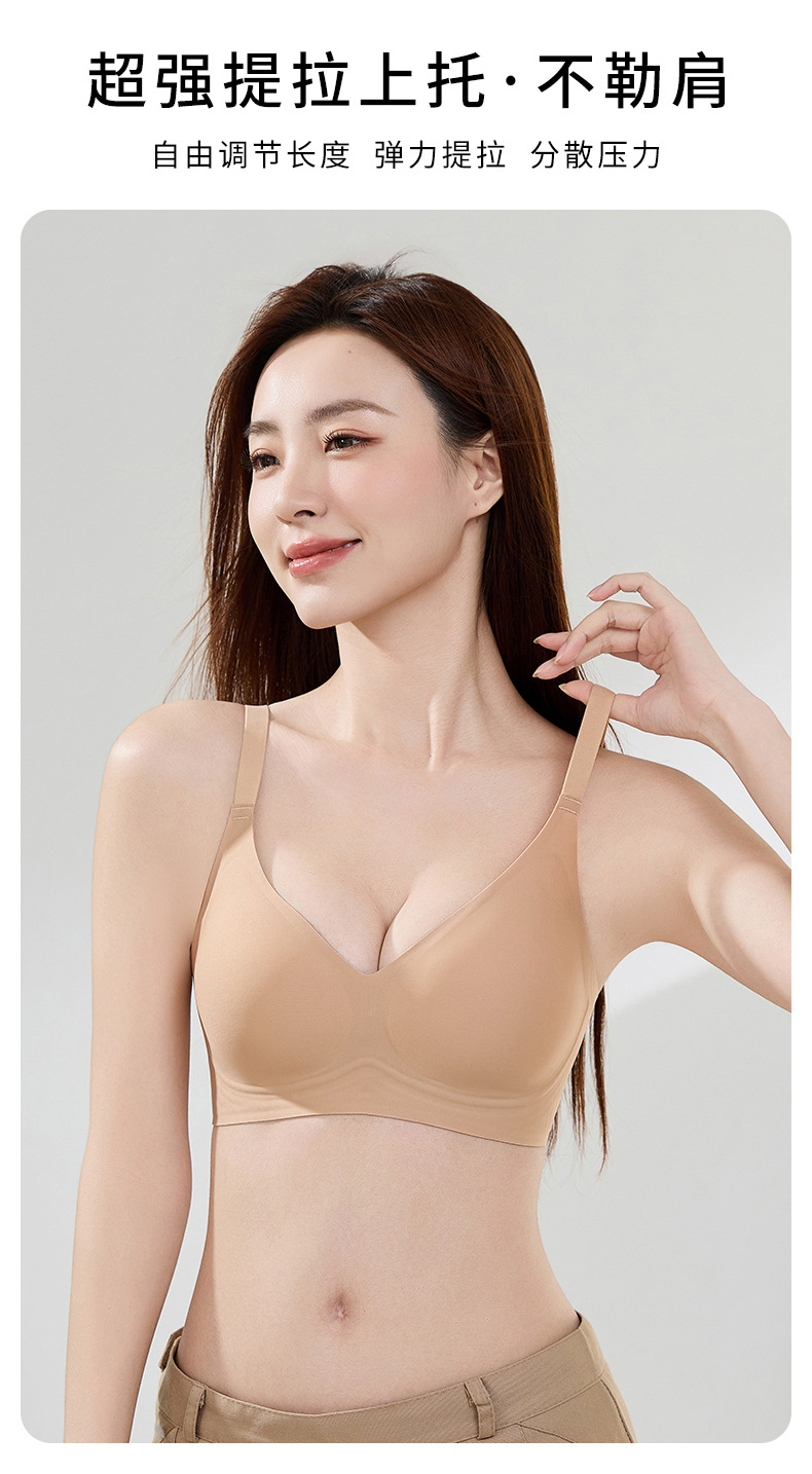 粉底液聚拢无痕隐形内衣软支撑提拉文胸白T恤不透色聚拢侧收胸罩