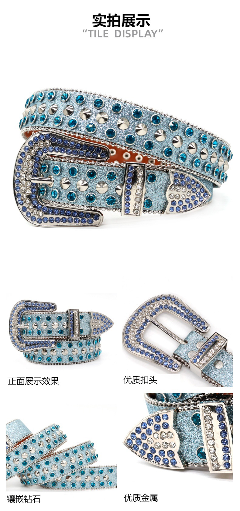 跨境时尚朋克个性潮流水钻腰带男高级感配饰钻石皮带外贸一件代发