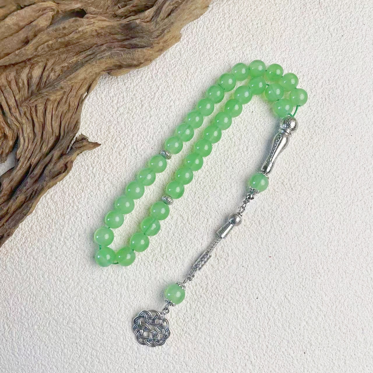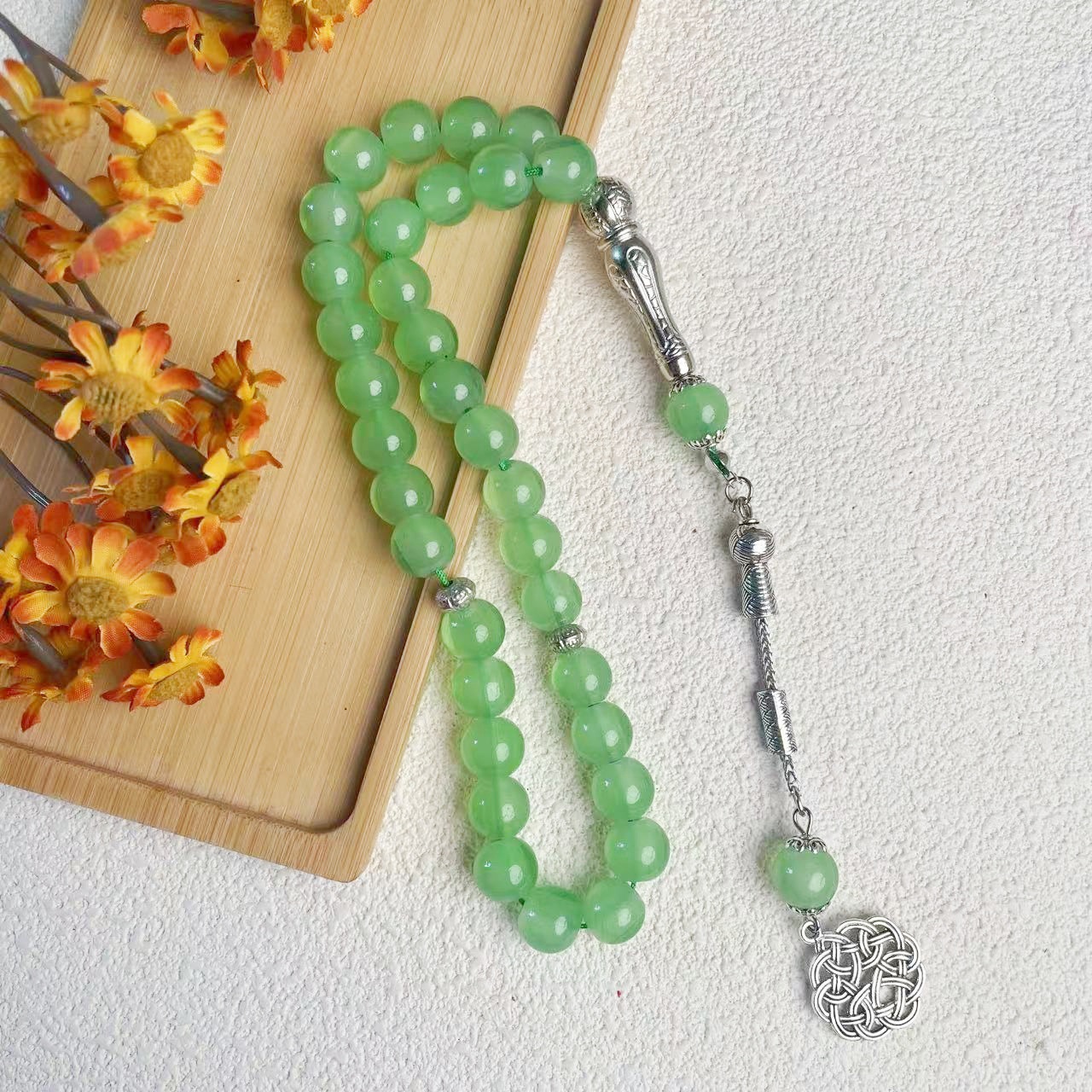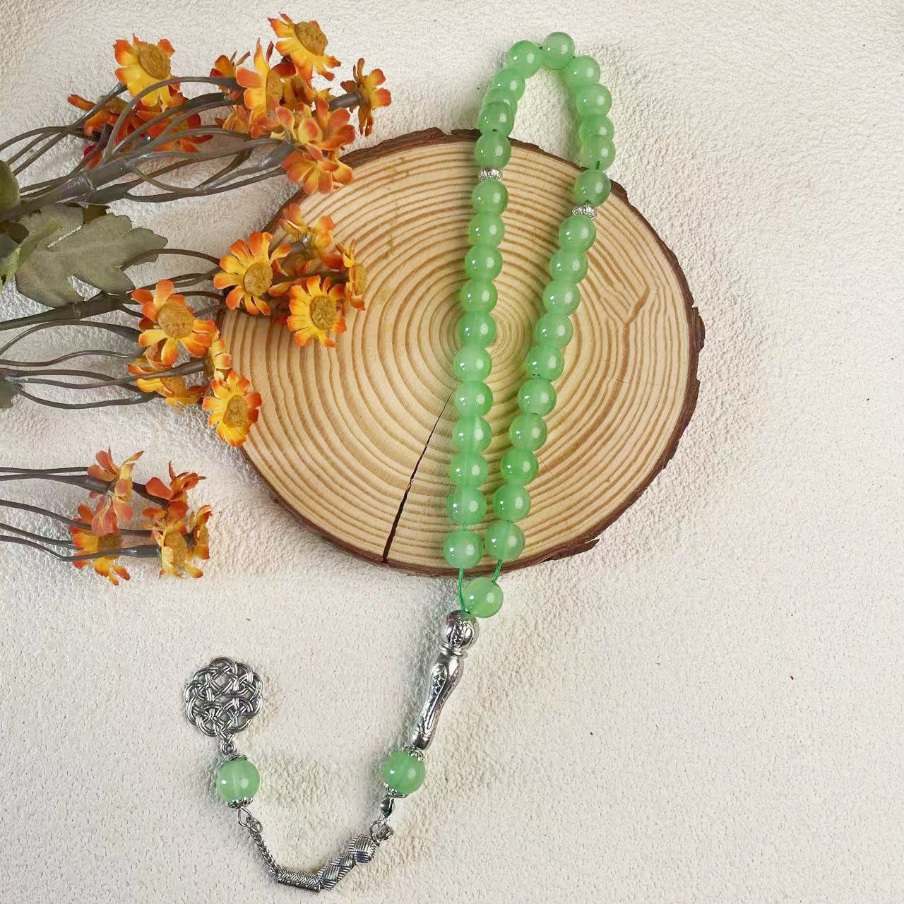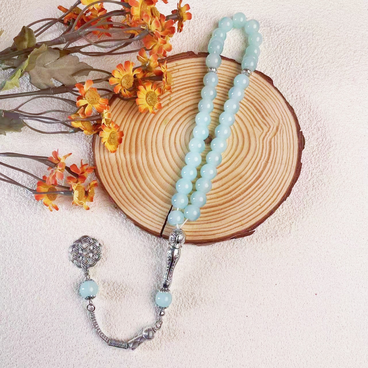 新款10厘33颗玉料玻璃穆斯林念珠中东阿拉伯礼拜T念珠穆斯林asbih