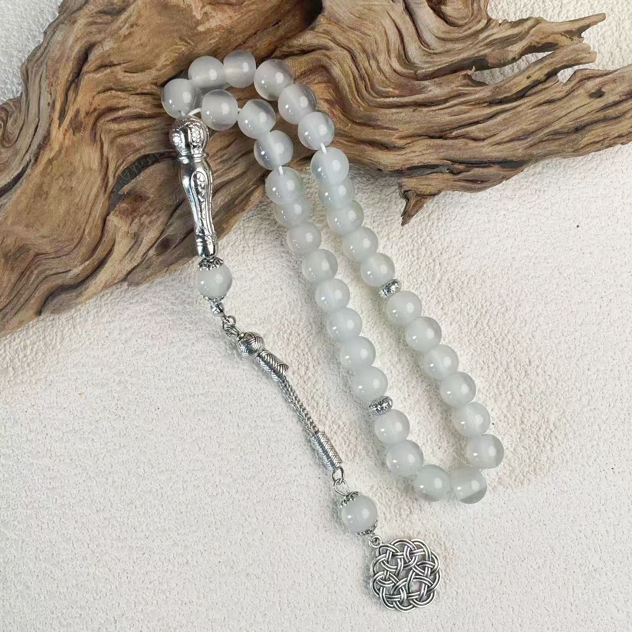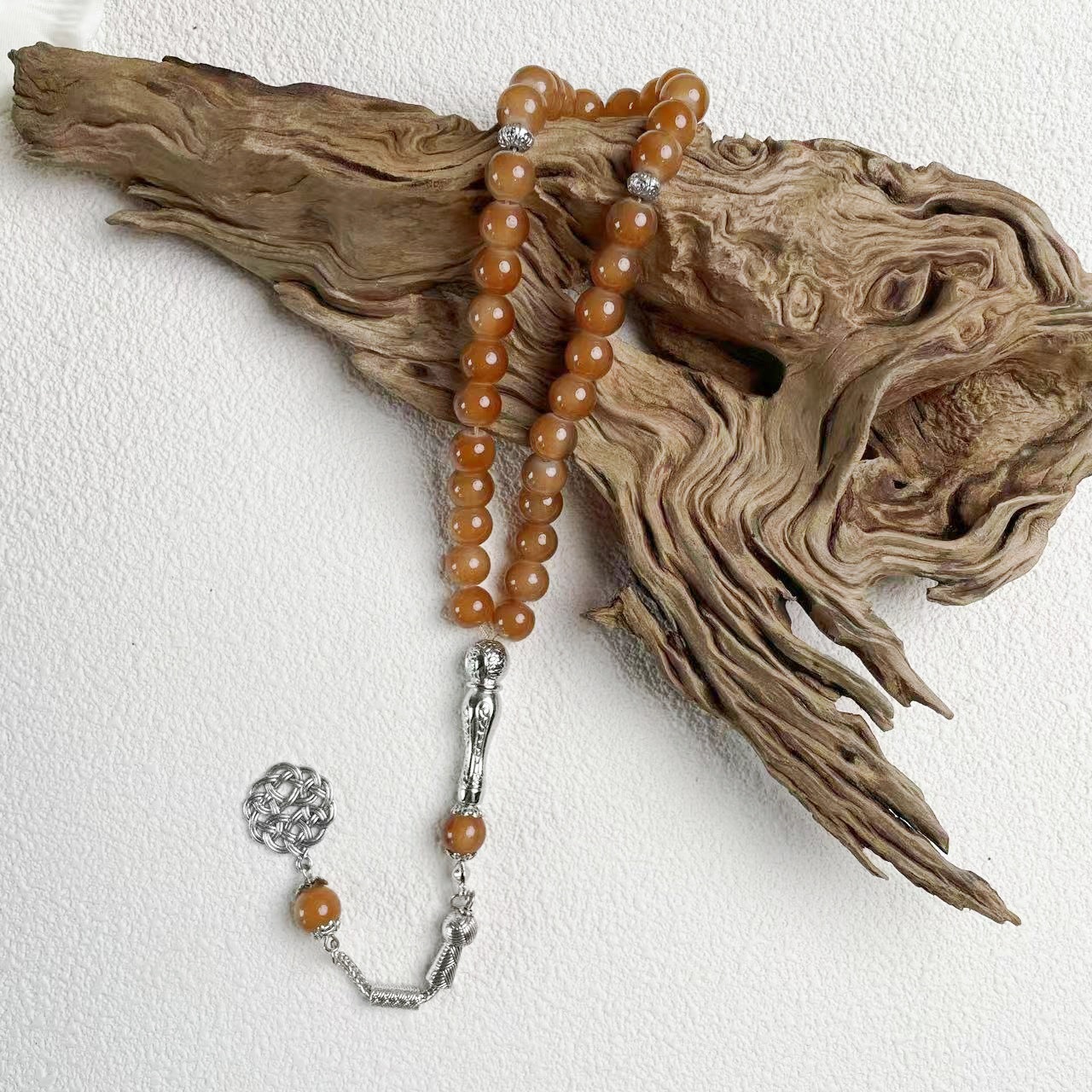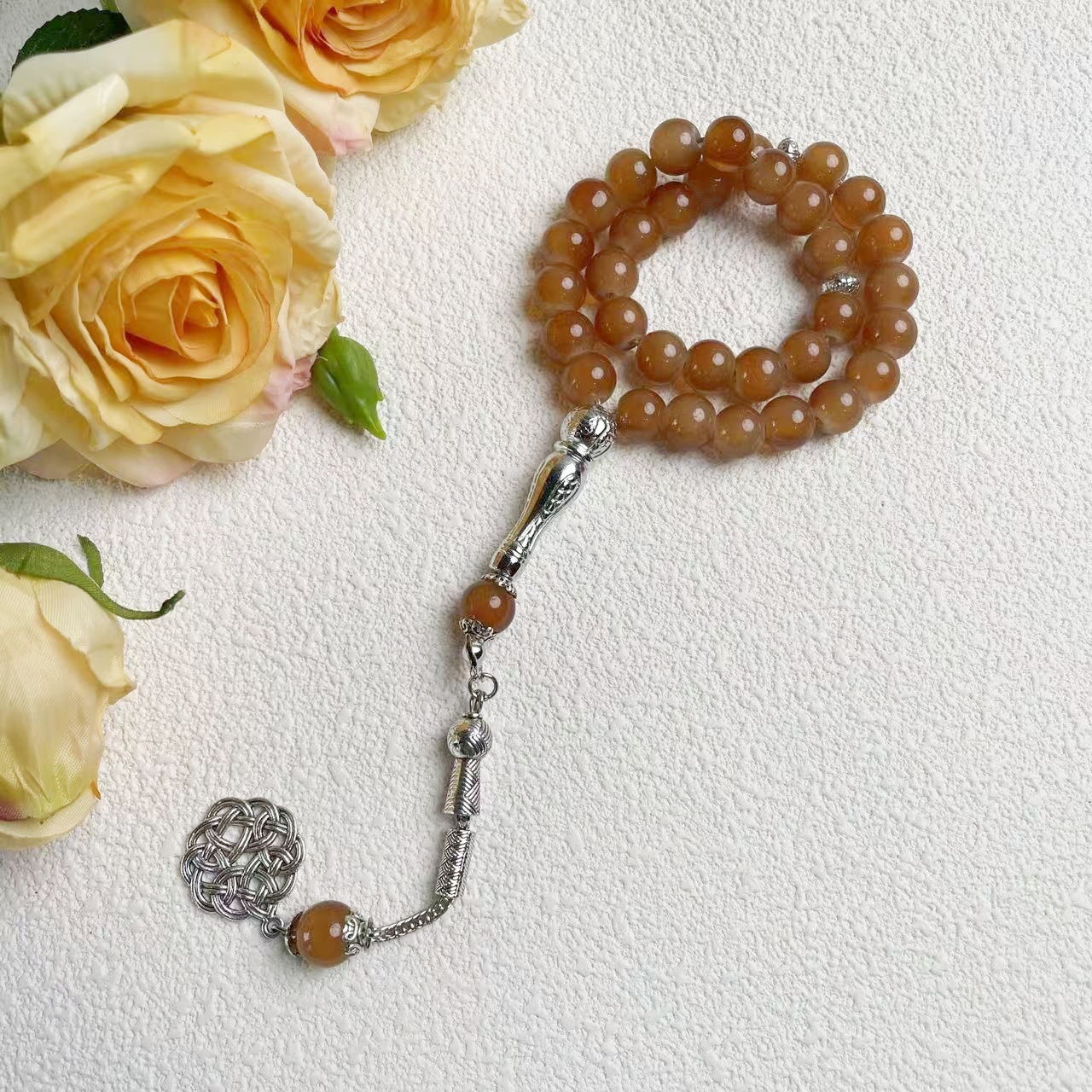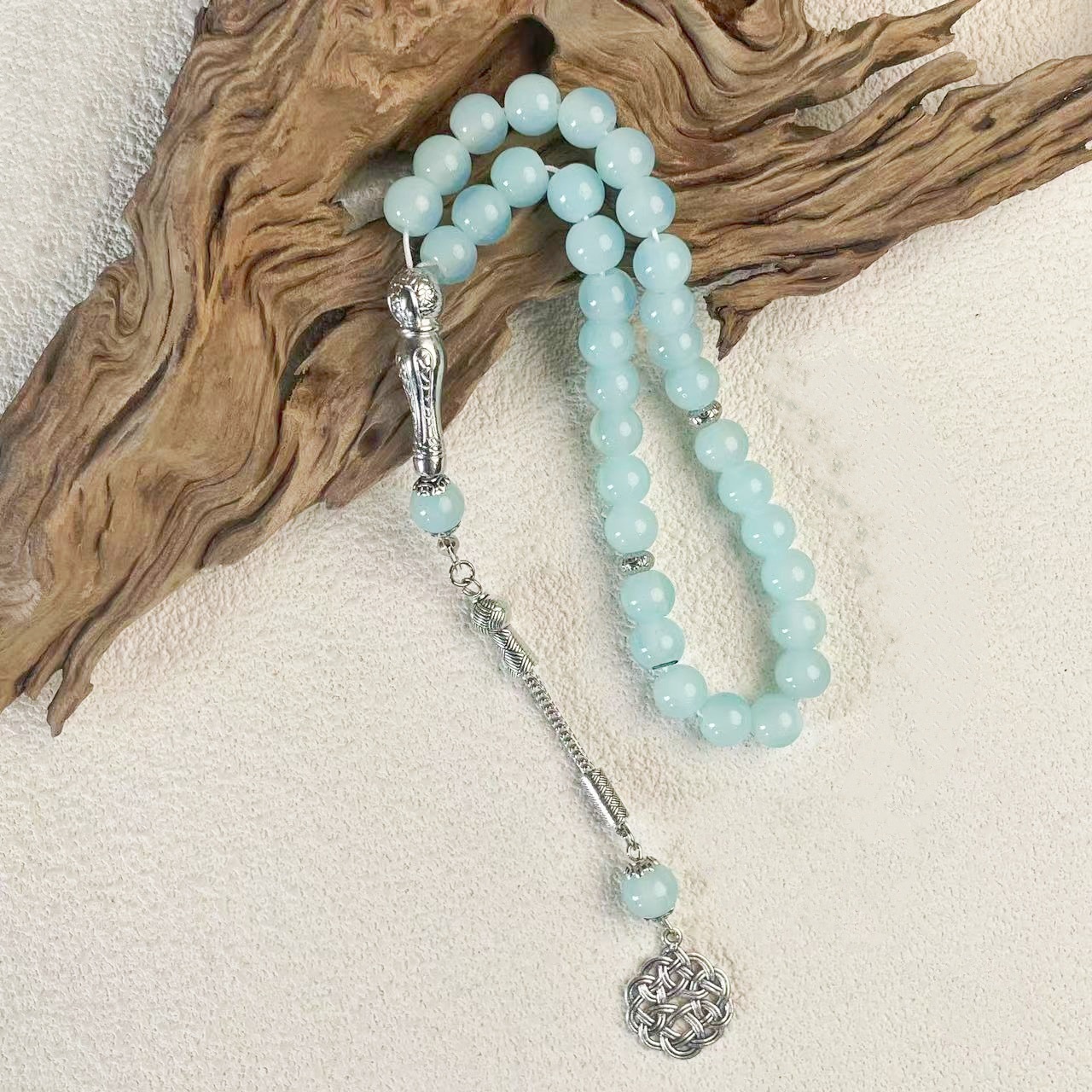 新款10厘33颗玉料玻璃穆斯林念珠中东阿拉伯礼拜T念珠穆斯林asbih