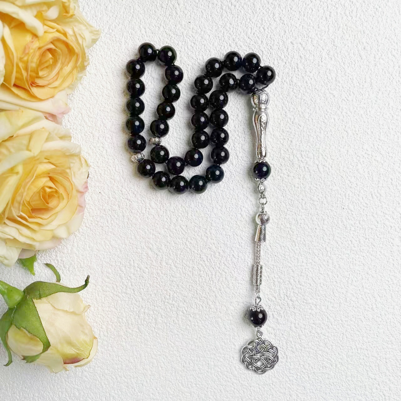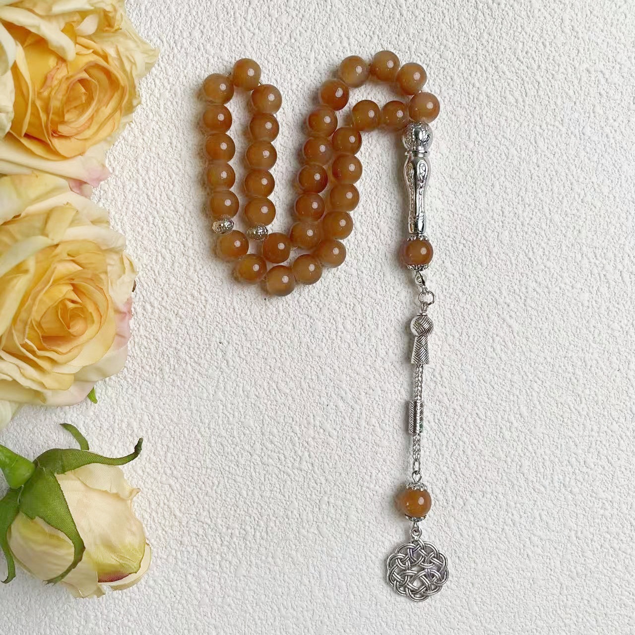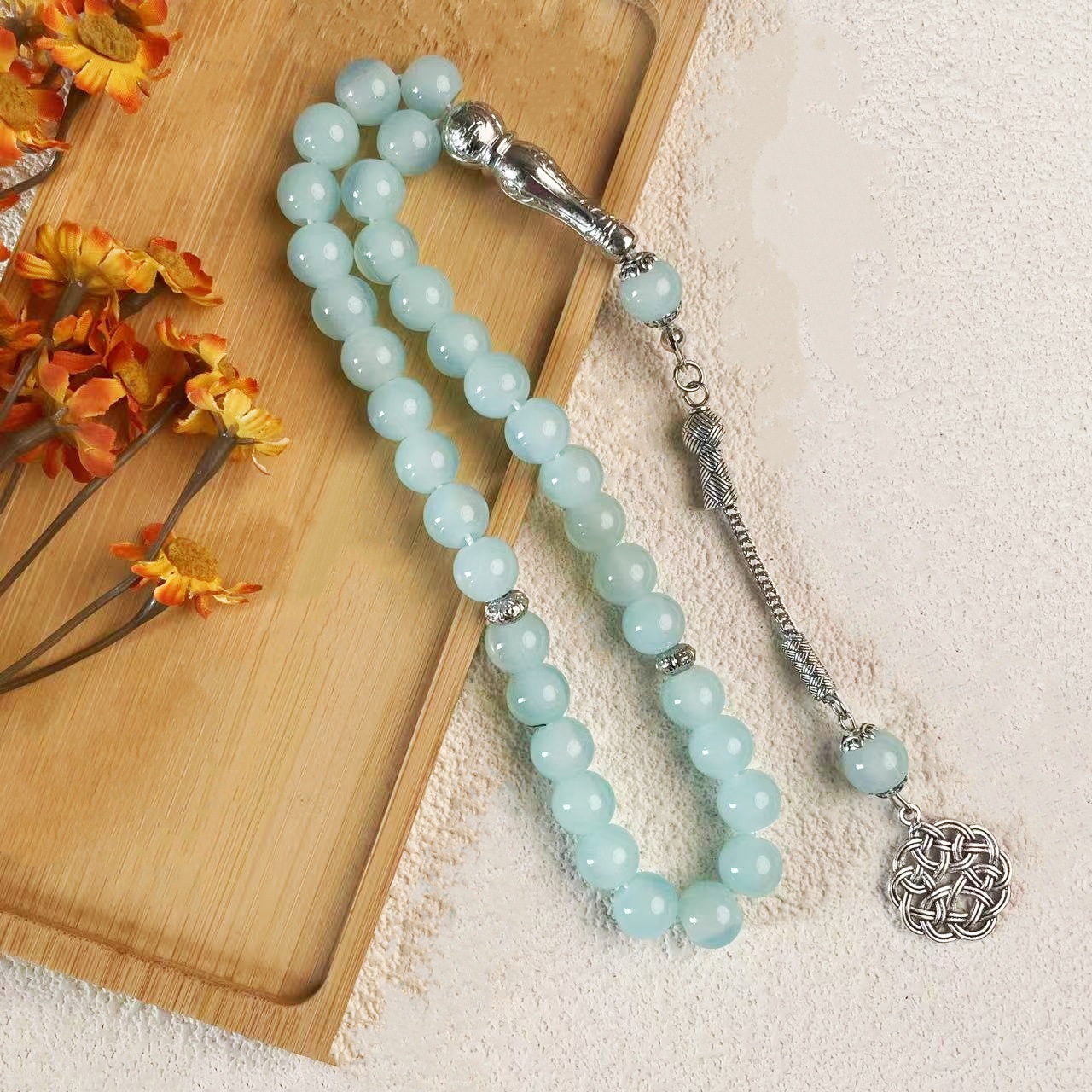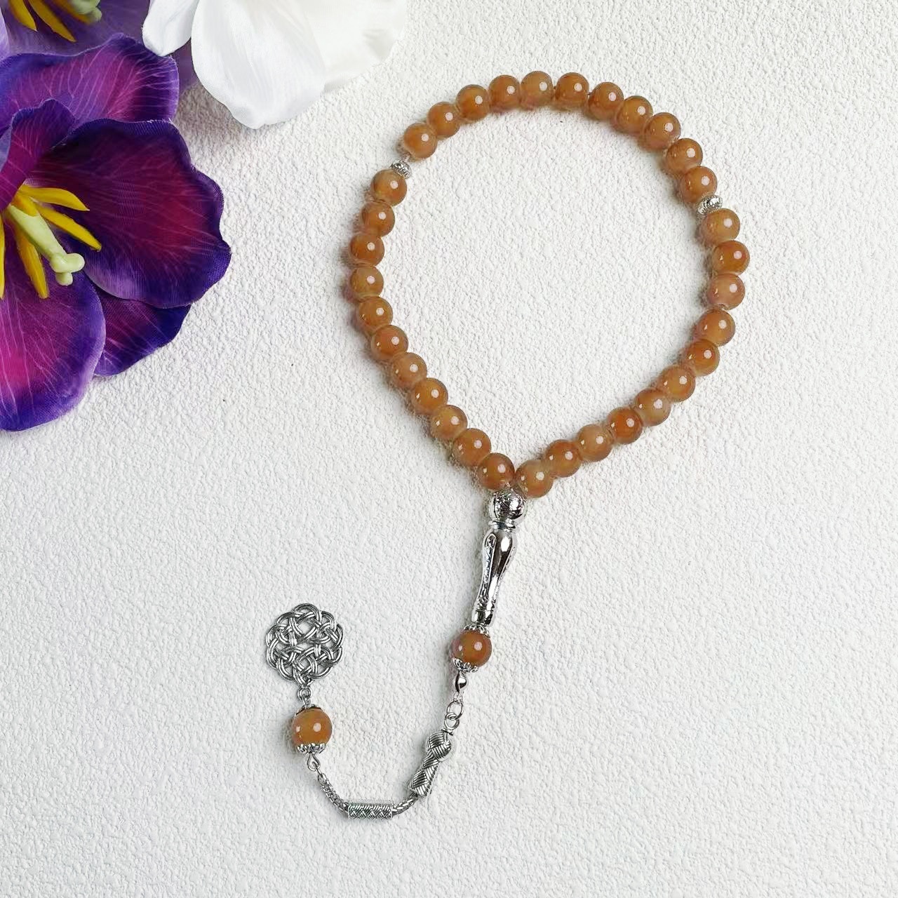 新款10厘33颗玉料玻璃穆斯林念珠中东阿拉伯礼拜T念珠穆斯林asbih