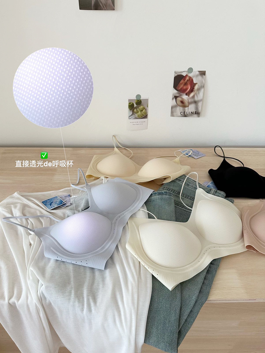 白T不透!粉底液隐形无痕内衣女冰丝薄款大胸显小聚拢美背心文胸