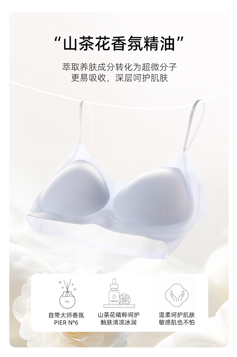 山茶花薄款内衣女草本香氛凉感细闪肩带无钢圈聚拢无痕初色文胸