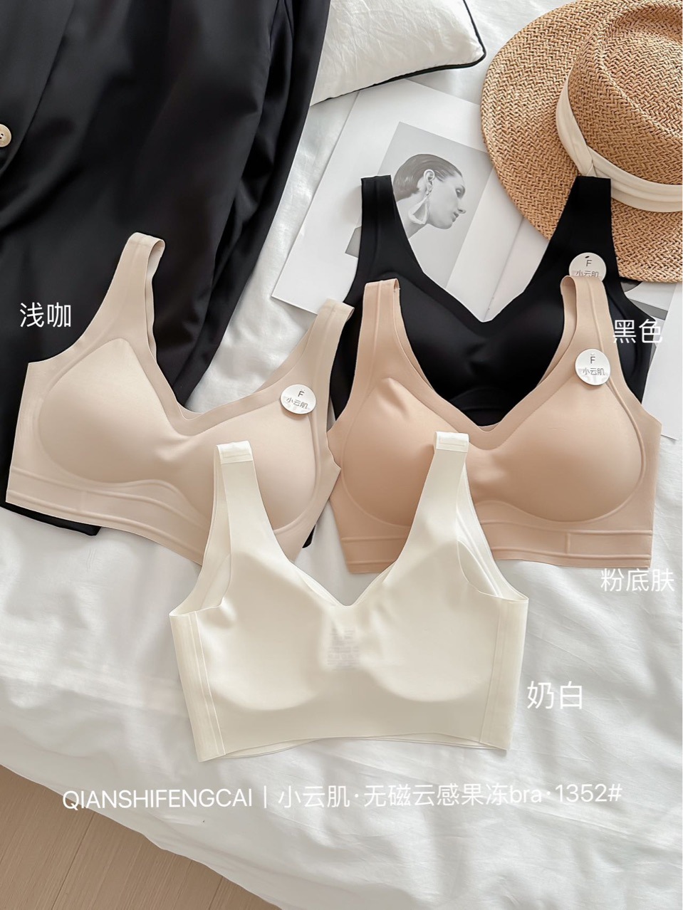 1352春夏新品冰丝凉皮薄款宽肩无痕背心式内衣大胸显小无尺码文胸