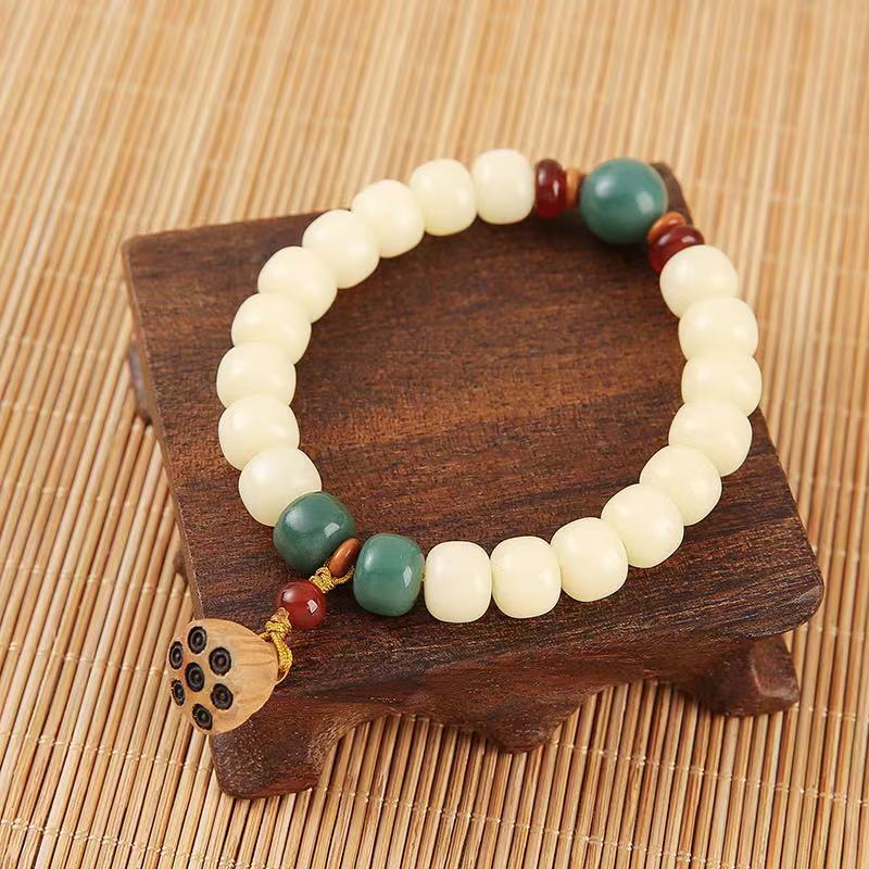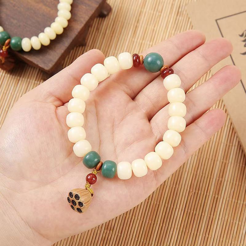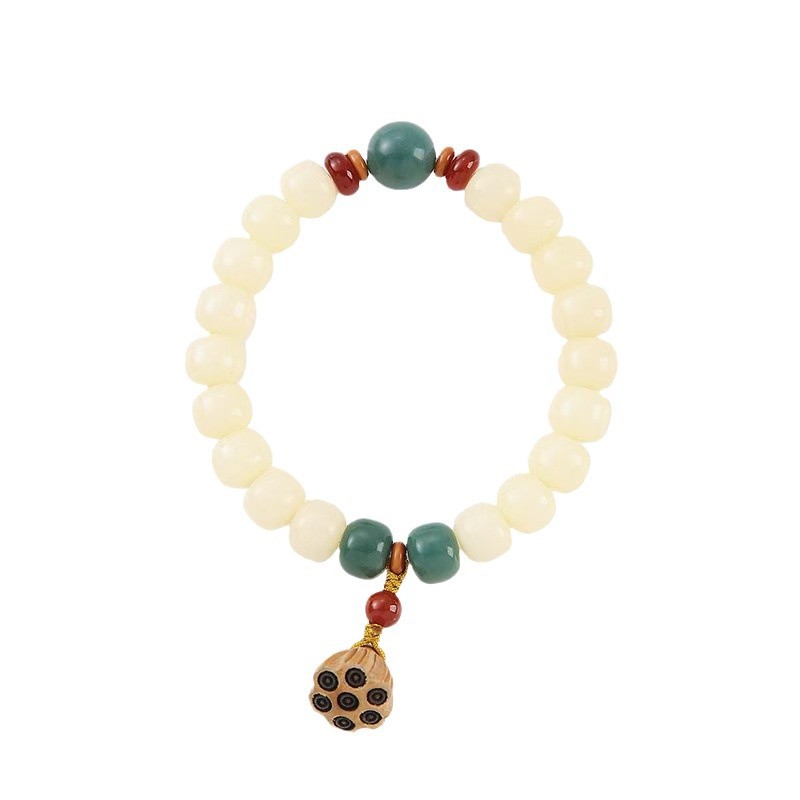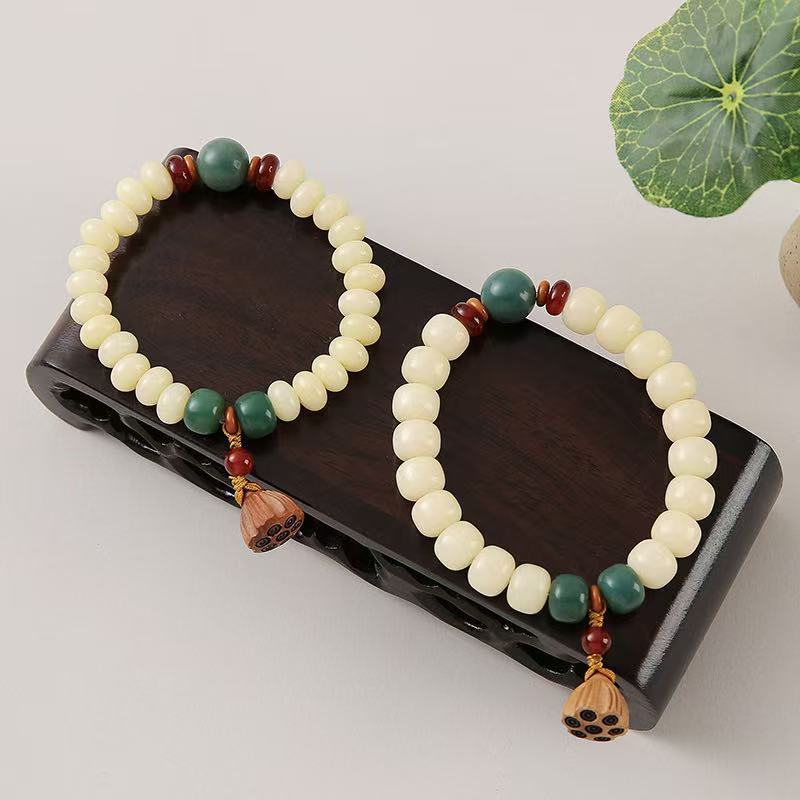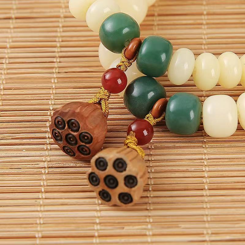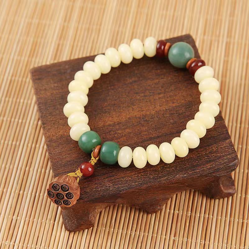 直播爆款羊脂玉化奶黄单圈菩提根手串莲蓬吊坠高抛油润菩提手串批
