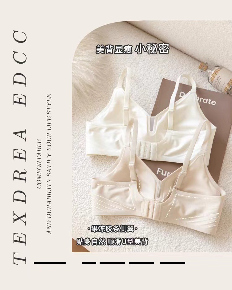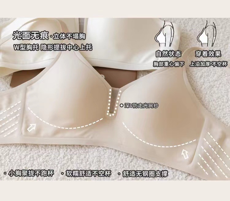 软支撑果冻条无痕内衣女薄款深V收副乳防下垂 无钢圈小胸聚拢文胸