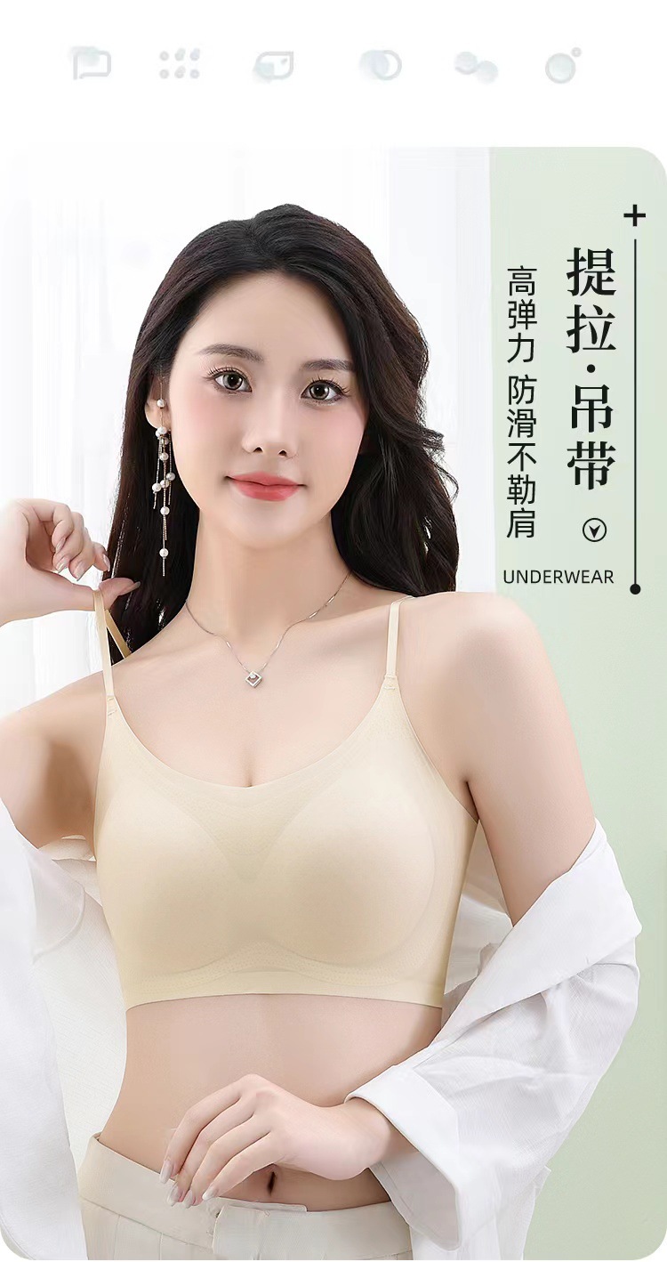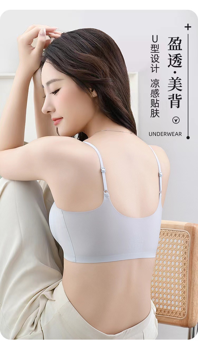 超薄美背冰丝无痕内衣女薄款聚拢无钢圈透气固定杯吊带裹胸文胸夏