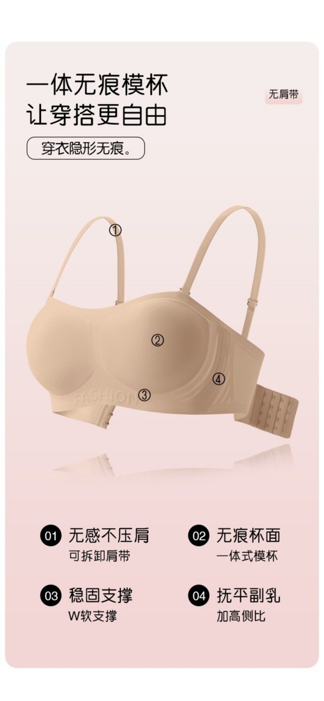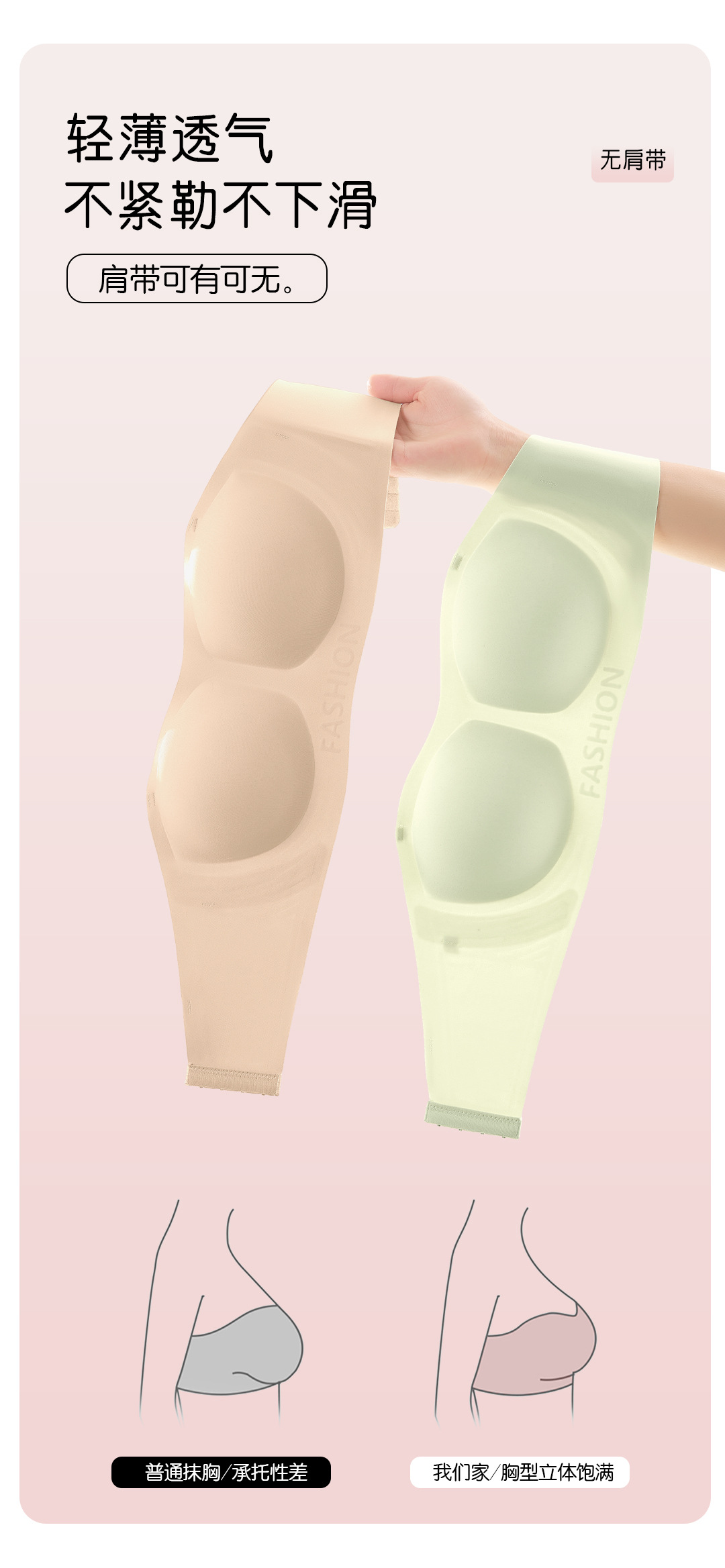 粉底液无肩带内衣女小胸聚拢防滑不掉隐形无痕抹胸裹胸文胸罩