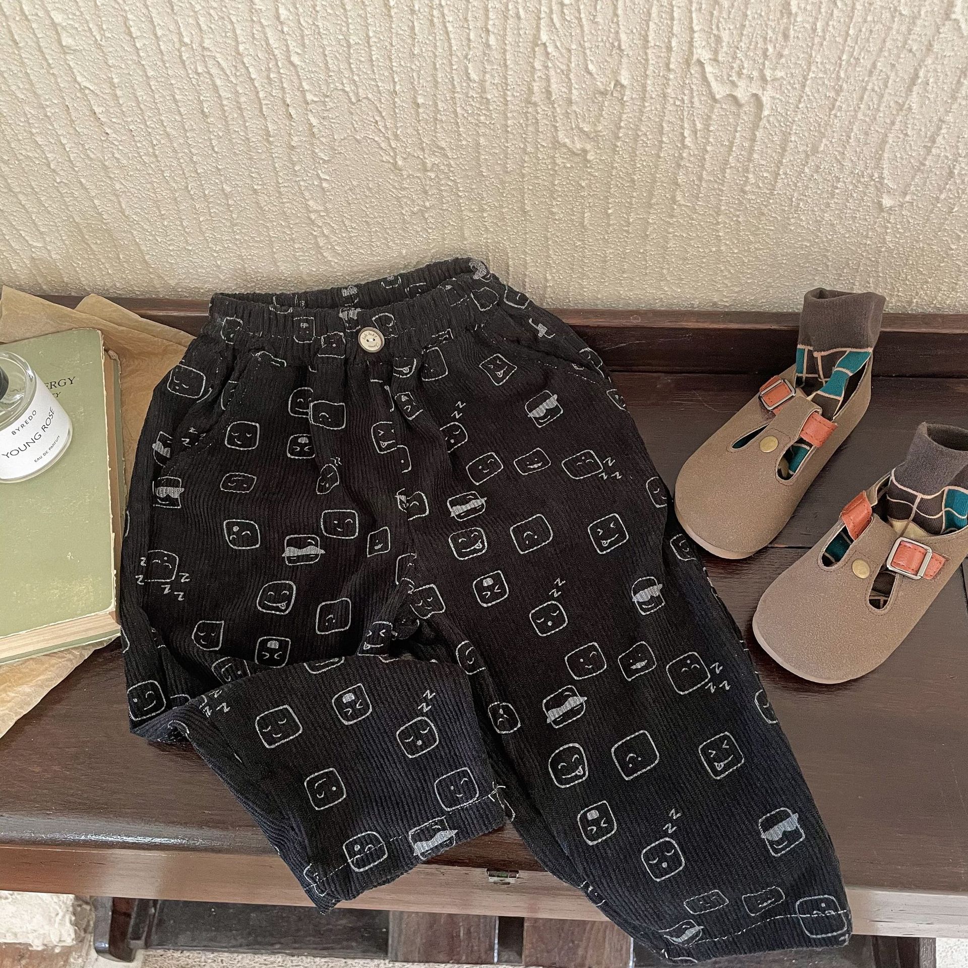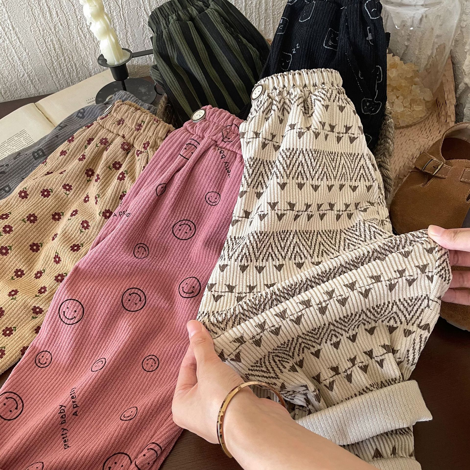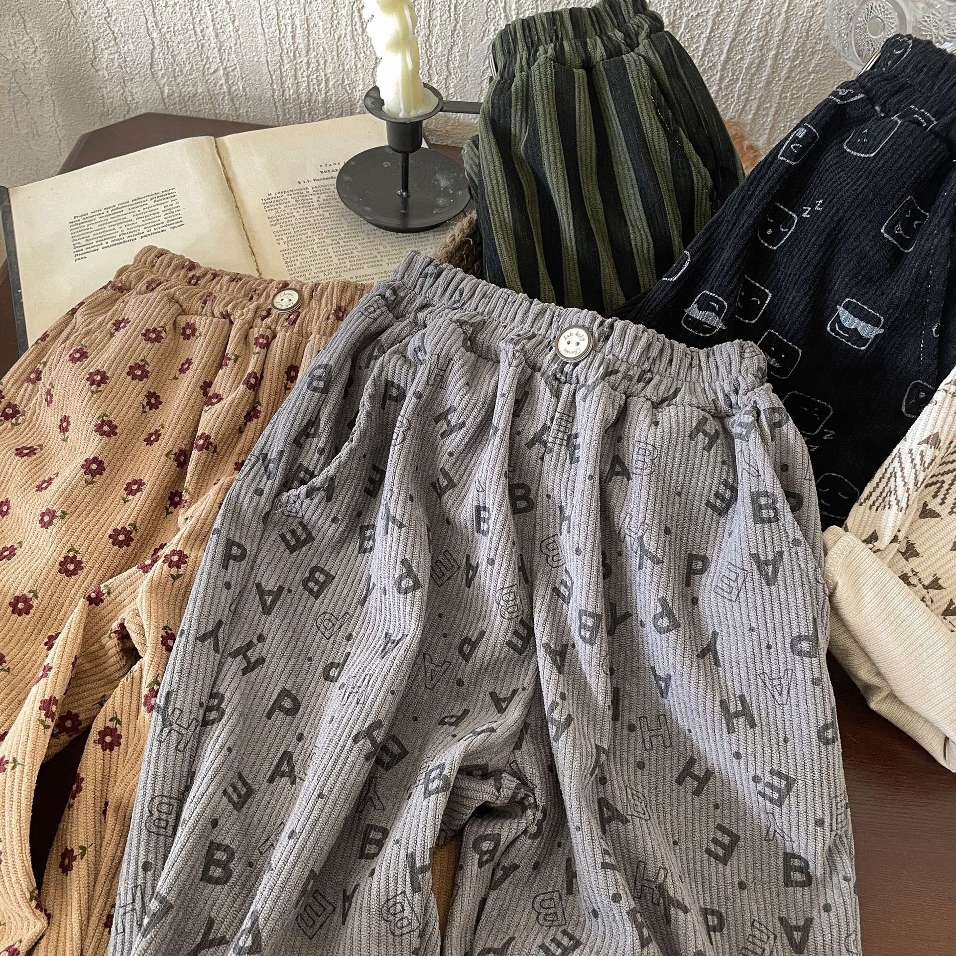 新款儿童裤子日系男女童春秋复古灯芯绒哈伦裤洋气外穿韩版休闲裤