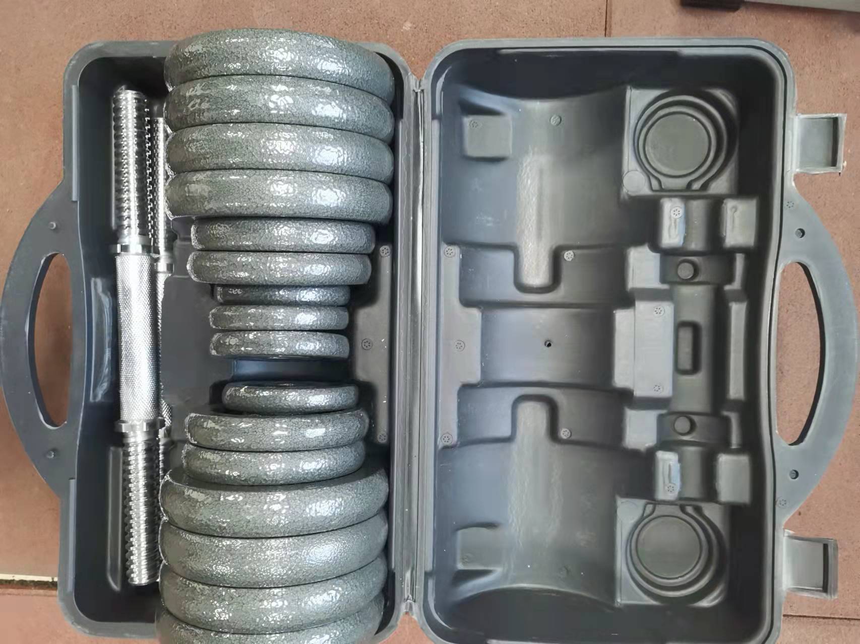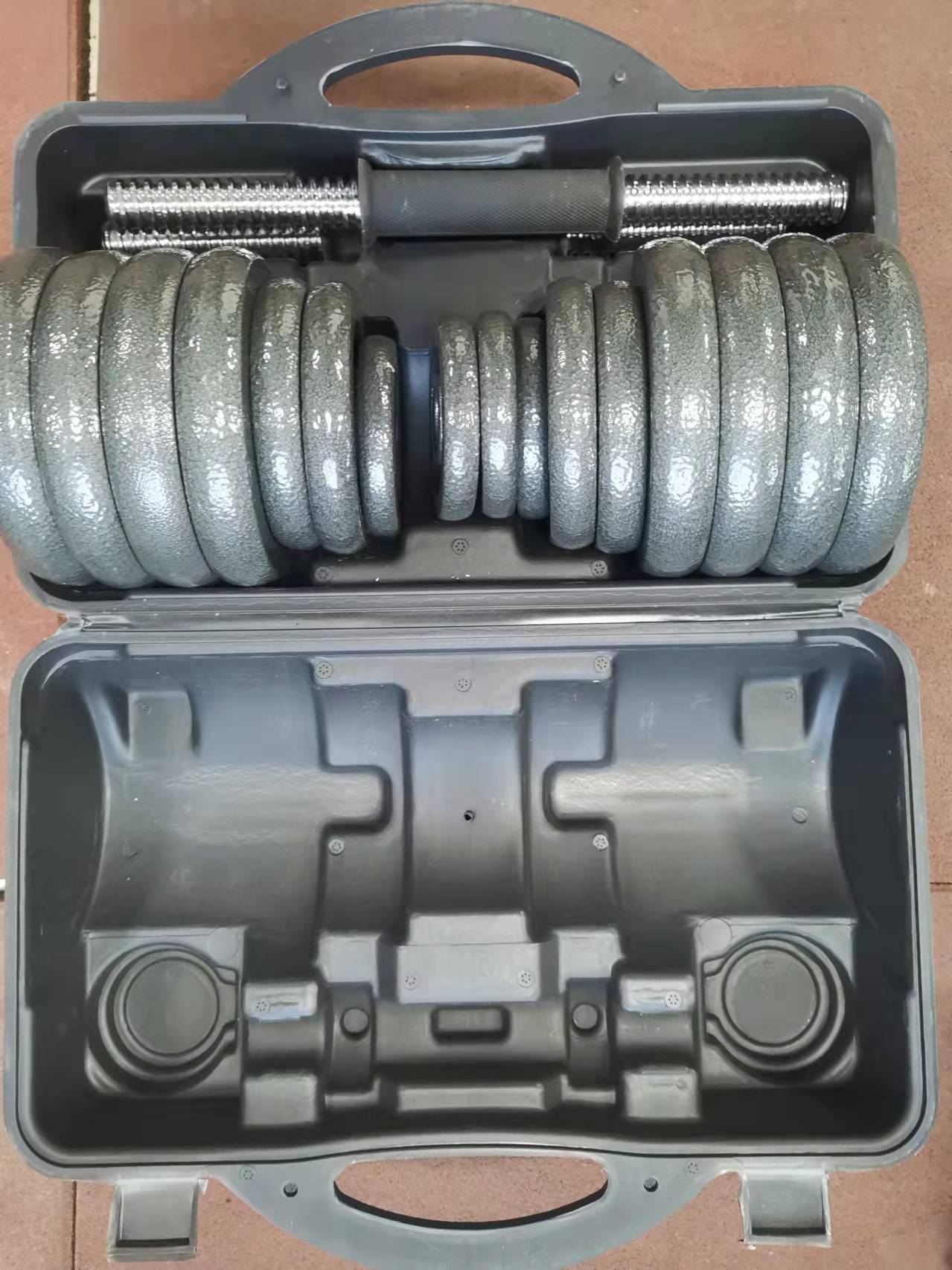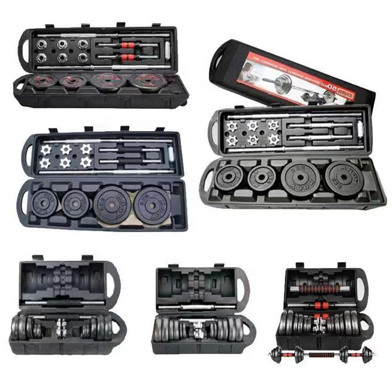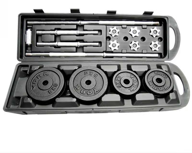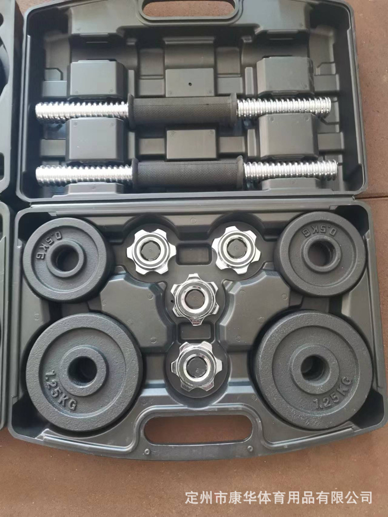 哑铃健身 烤漆杠铃哑铃套装塑盒 礼盒50 20 30 15kg 10kg组装哑铃