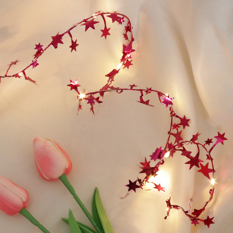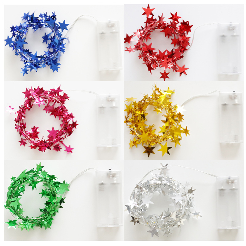 亮片星星LED铜线造型灯串 跨境批发圣诞节日装饰房间氛围感满天星