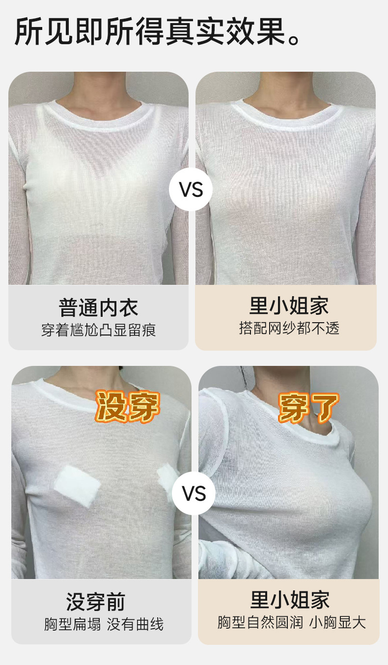 粉底液隐形内衣无痕聚拢大胸显小背心一片式上托小胸透气薄款文胸