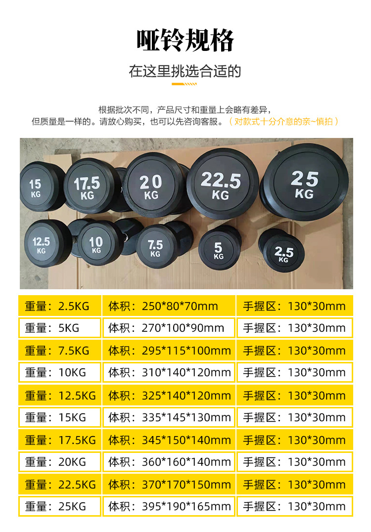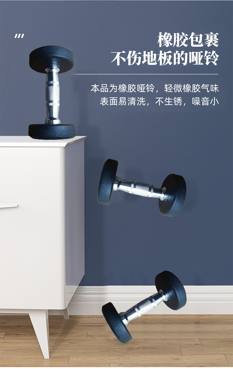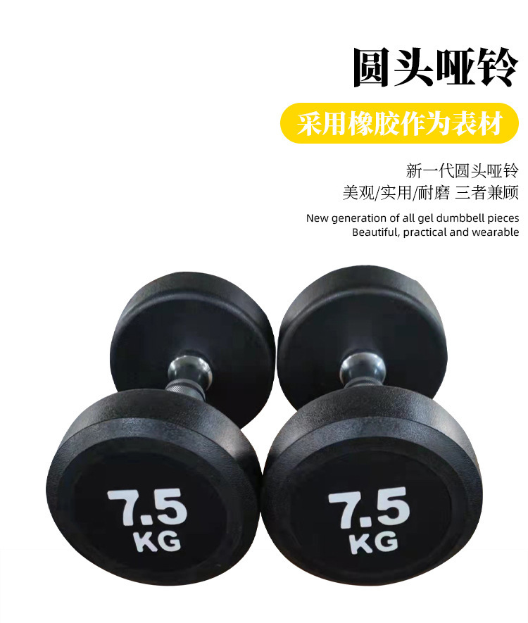 跨境批发圆头包胶哑铃男女士包胶健身房健身器材家用商用圆头哑铃