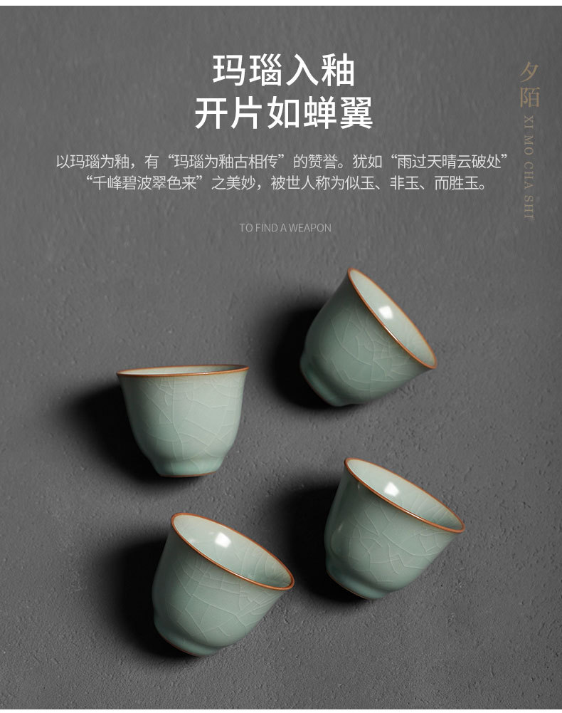 天青汝窑茶杯可养开片品茗杯高档功夫茶具8个家用小号客人喝茶杯