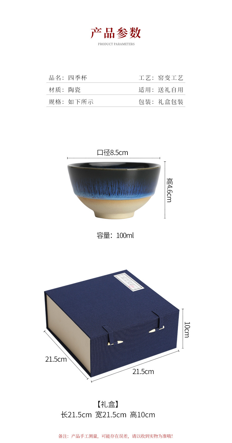 文创四季平安茶杯建盏主人杯送长辈客户礼品父母亲生日礼物礼盒装