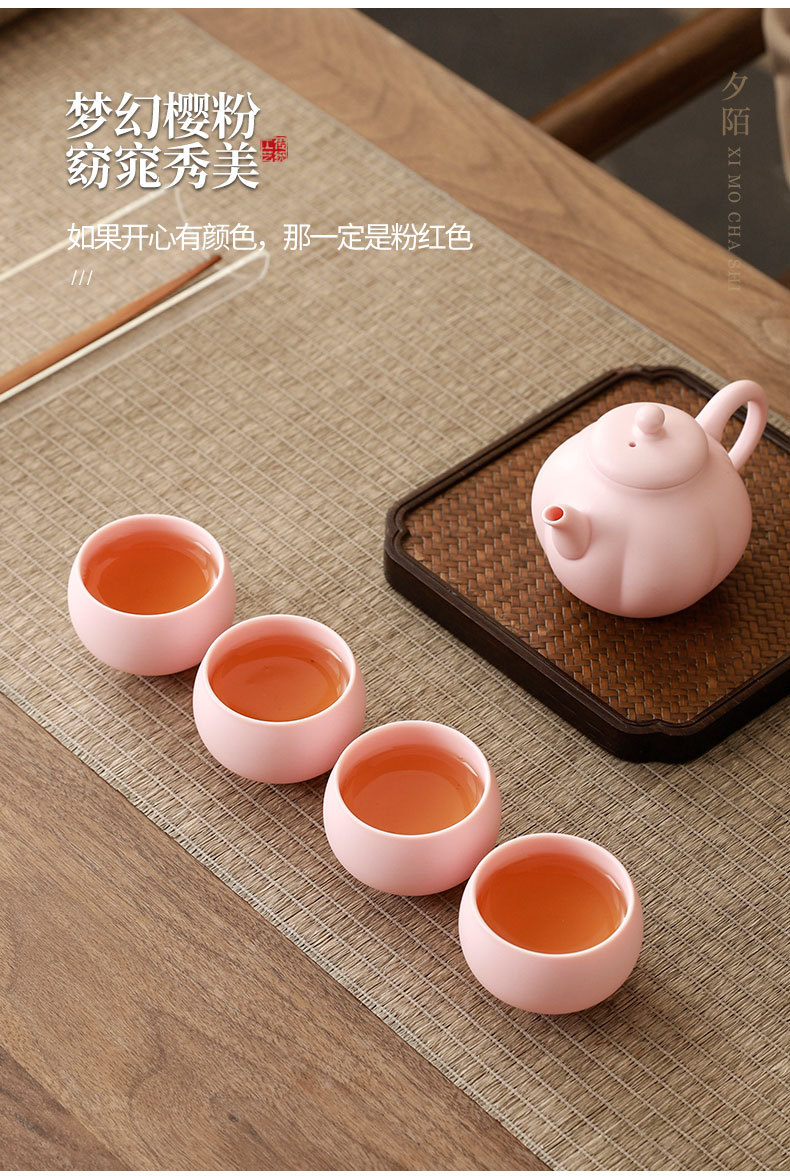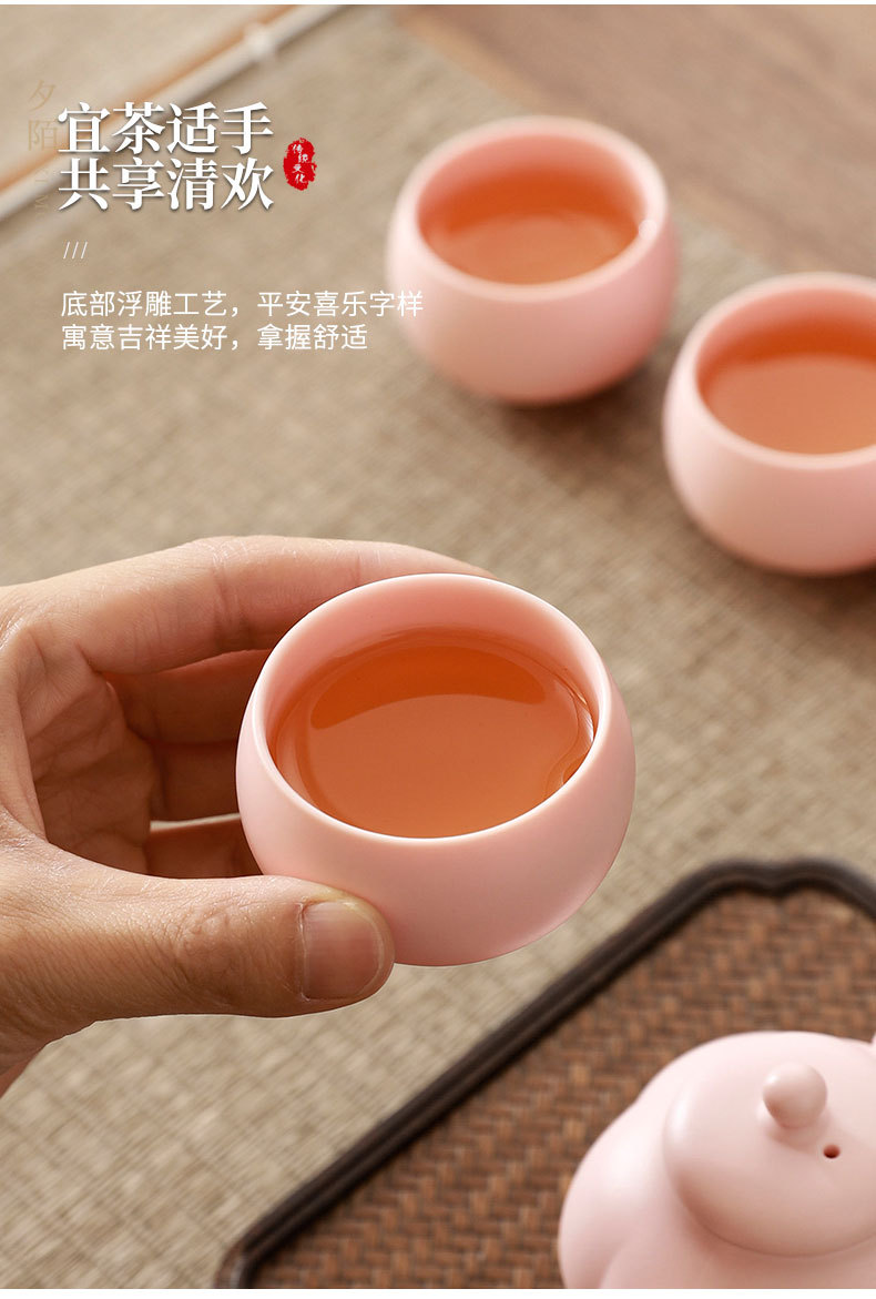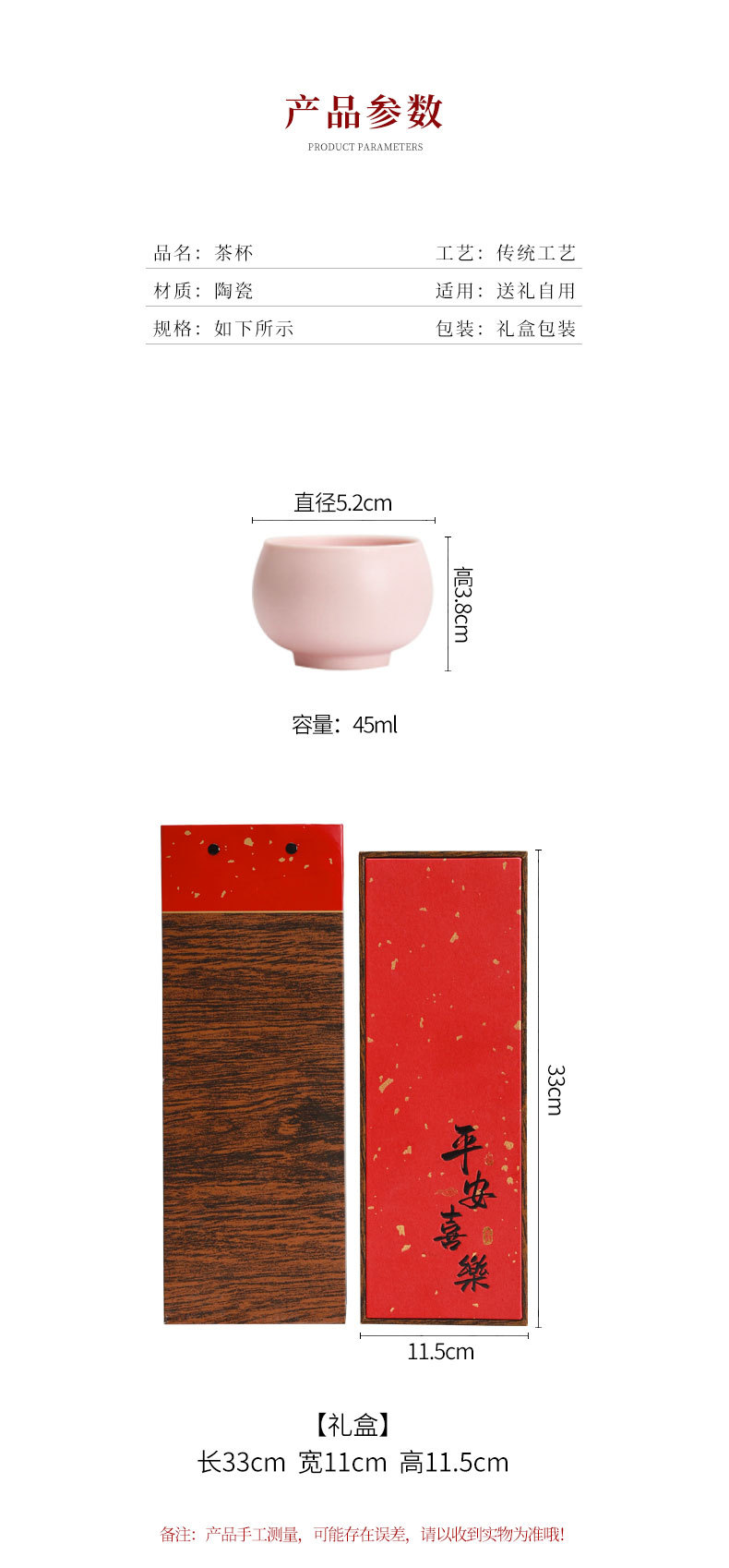 整套功夫茶杯创意平安喜乐陶瓷品茗杯女士喝茶粉色小杯子礼盒送礼