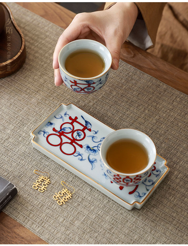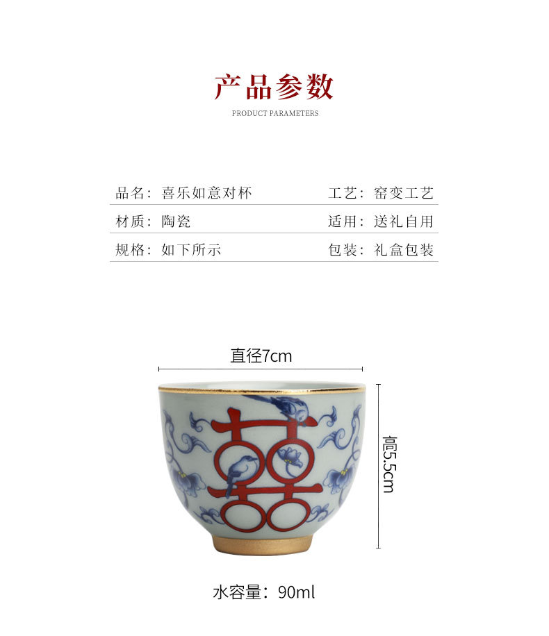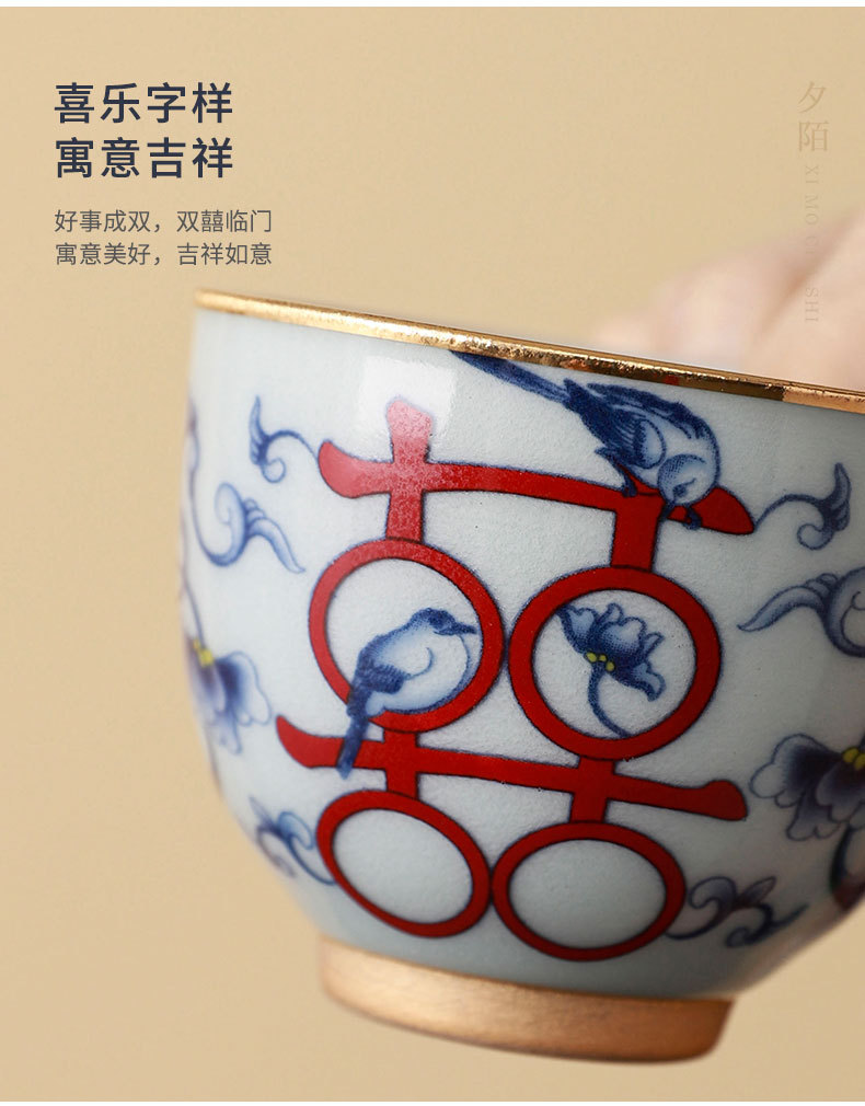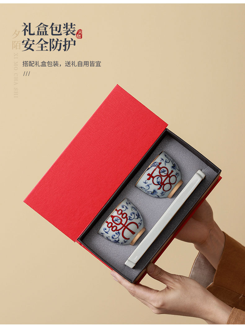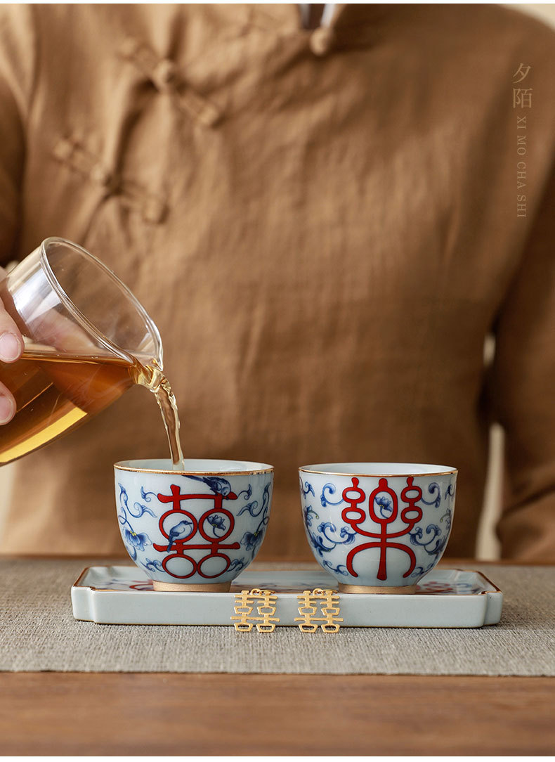 青花瓷囍乐对杯功夫茶具主人杯情侣茶杯结婚伴手礼情人节生日礼物