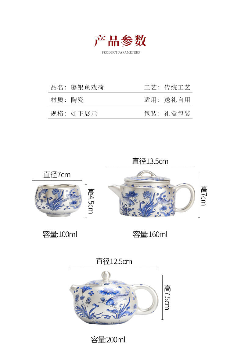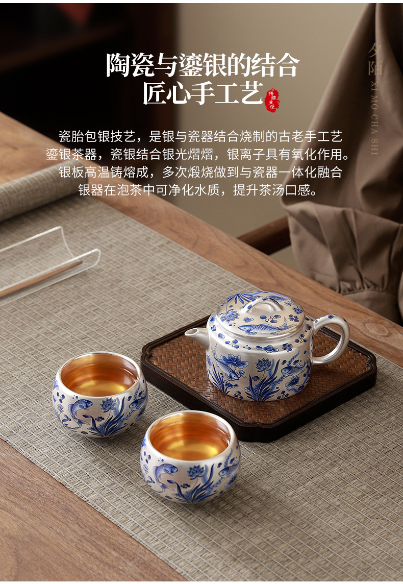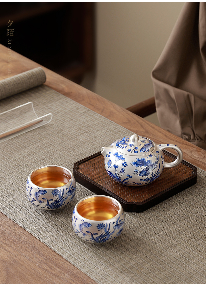 鎏银年年有鱼茶具伴手礼结婚纪念品送长辈领导礼品送男生生日礼物