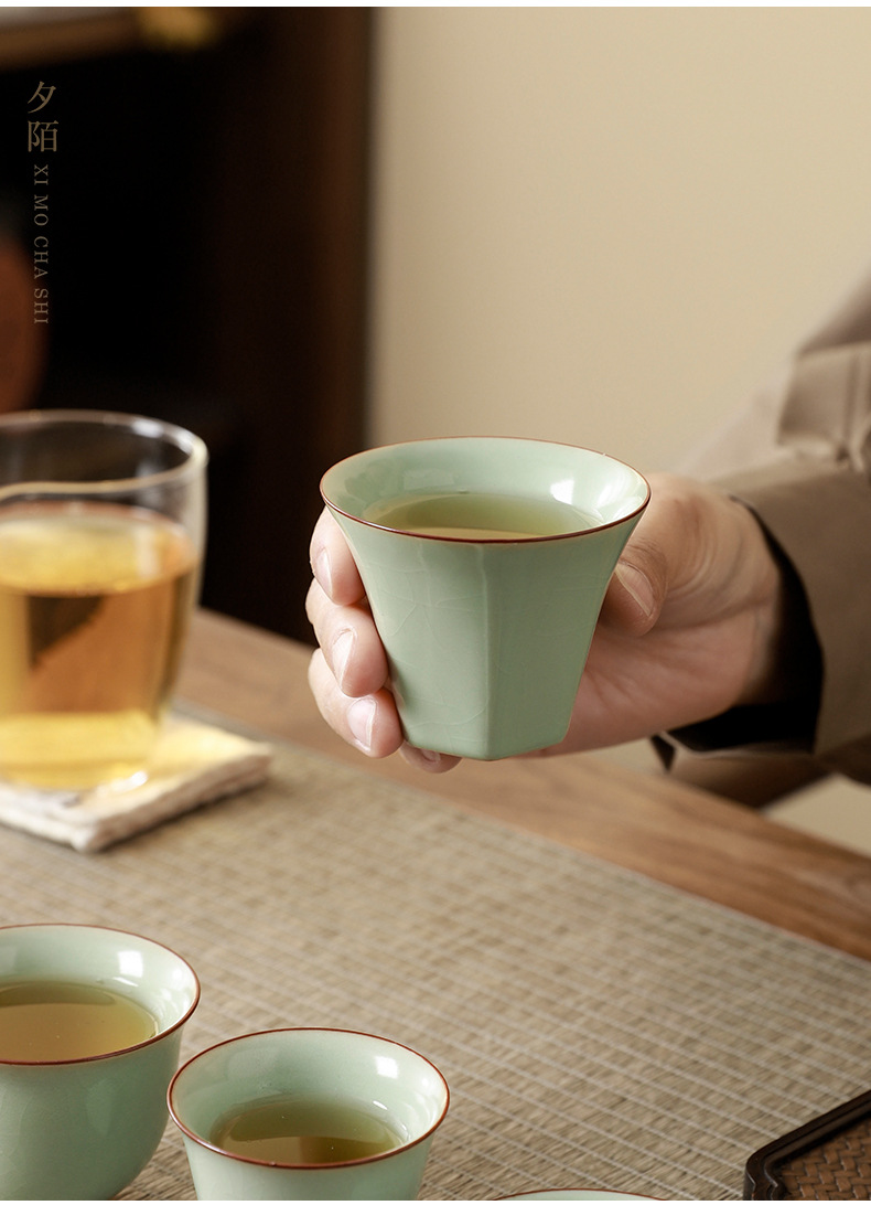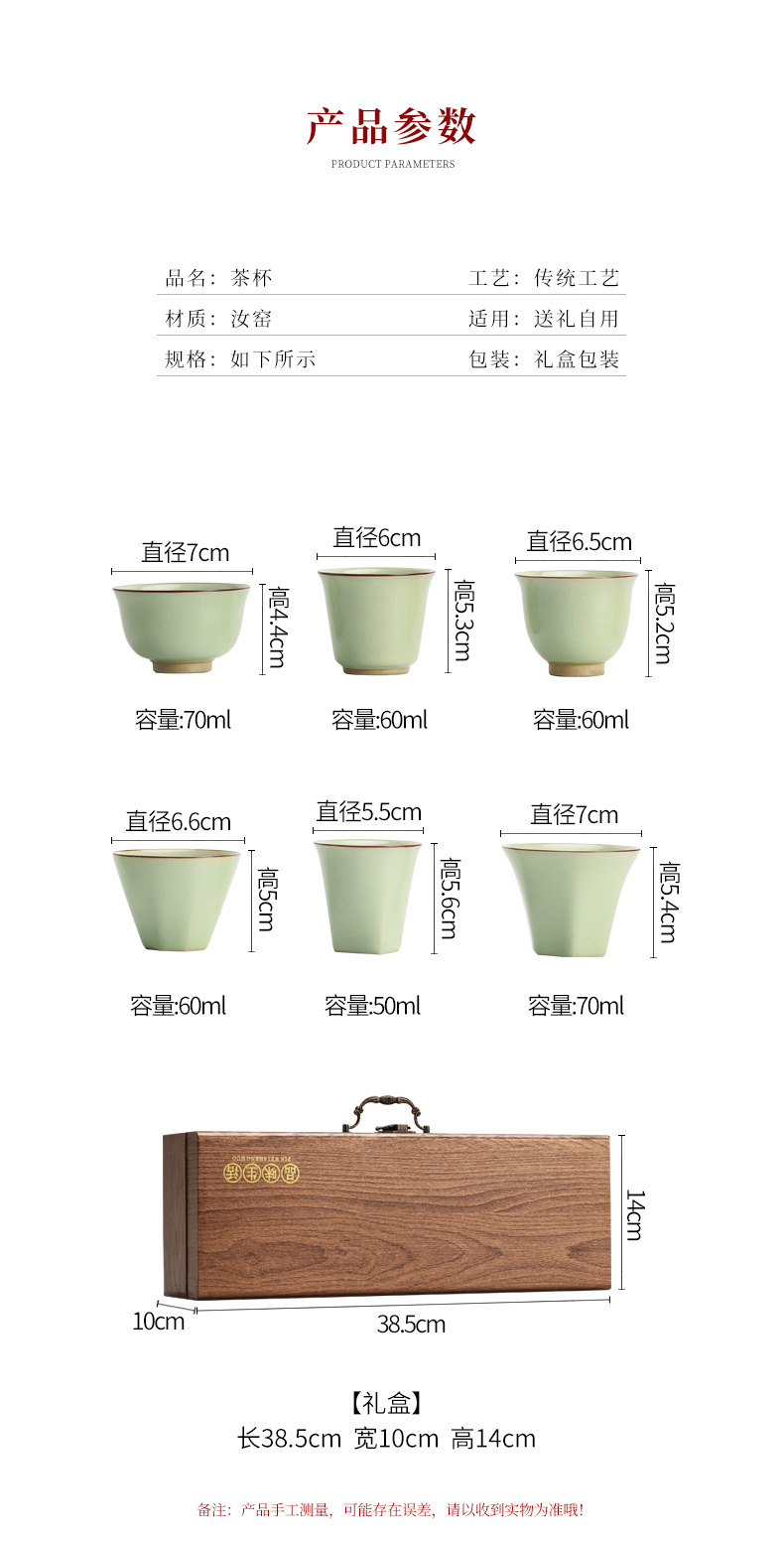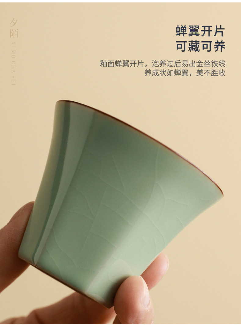 汝窑粉青小茶杯套装礼品可养开片冰裂纹品茗杯喝茶小杯子生日礼物