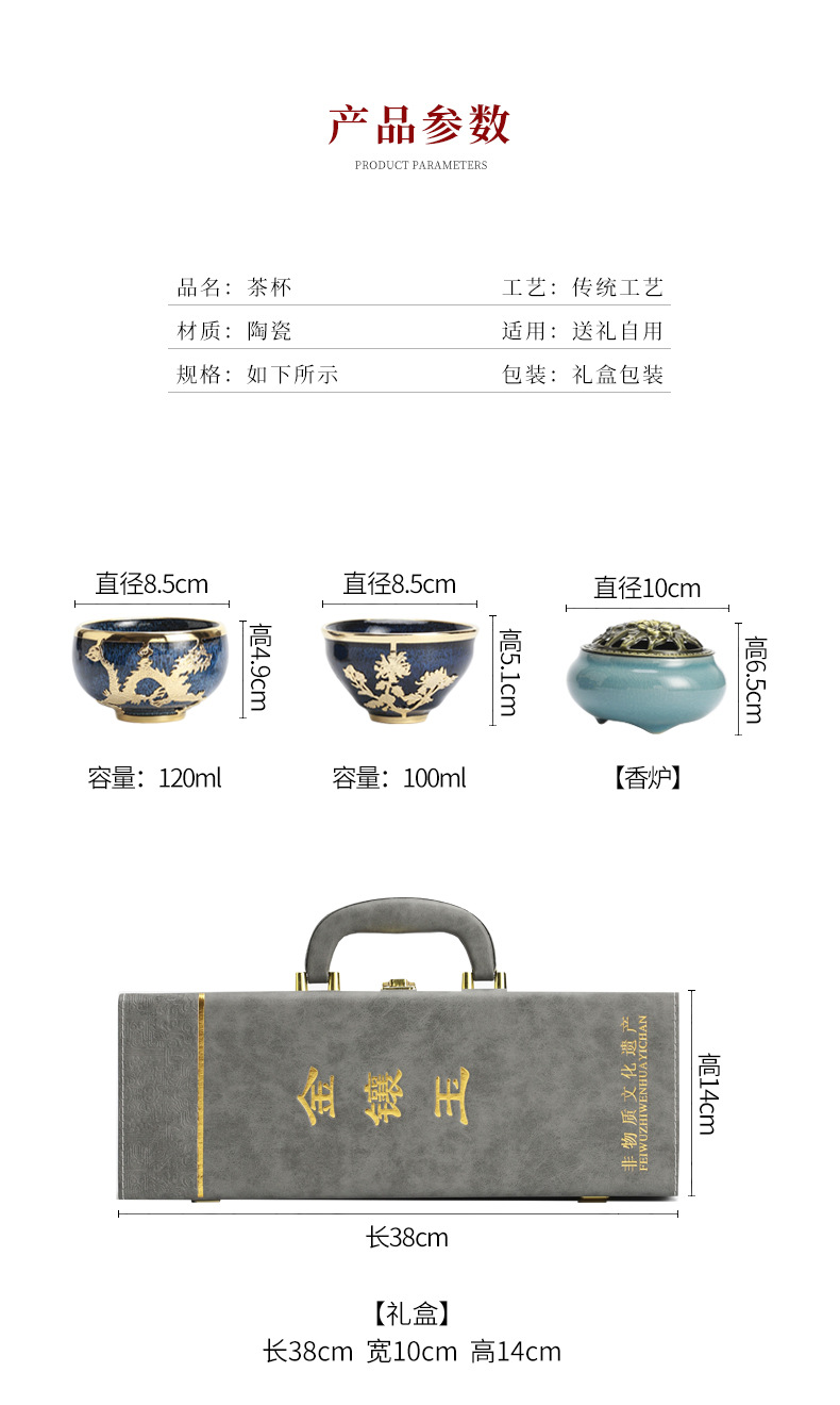 手工金镶玉主人杯高档茶具礼盒送长辈领导客户商务随礼品生日礼物