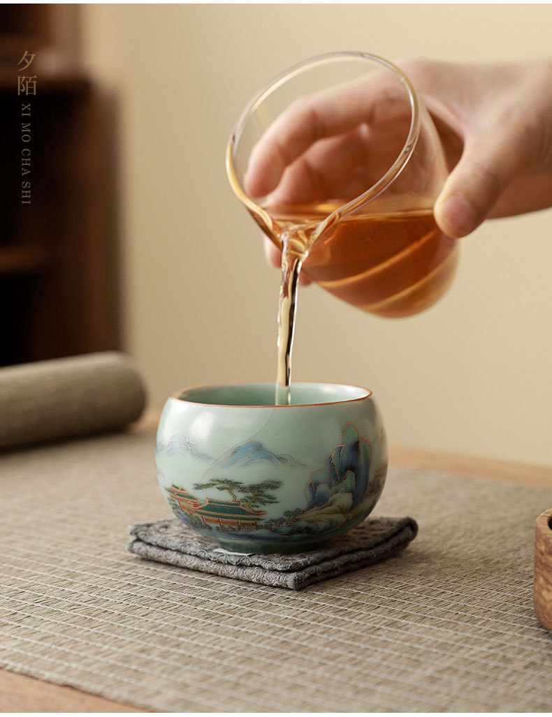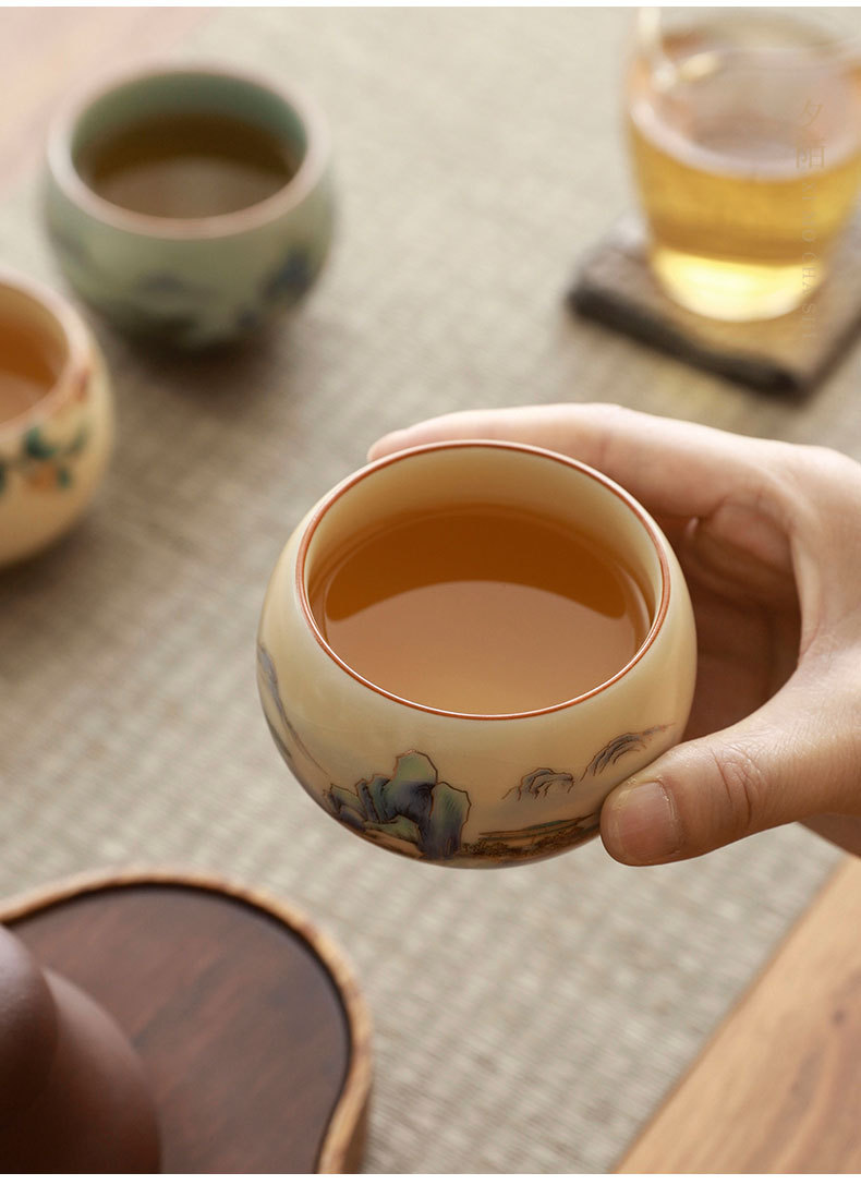 汝窑山水茶杯文创陶瓷茶具伴手礼公司商务随手礼送长辈父亲节礼物