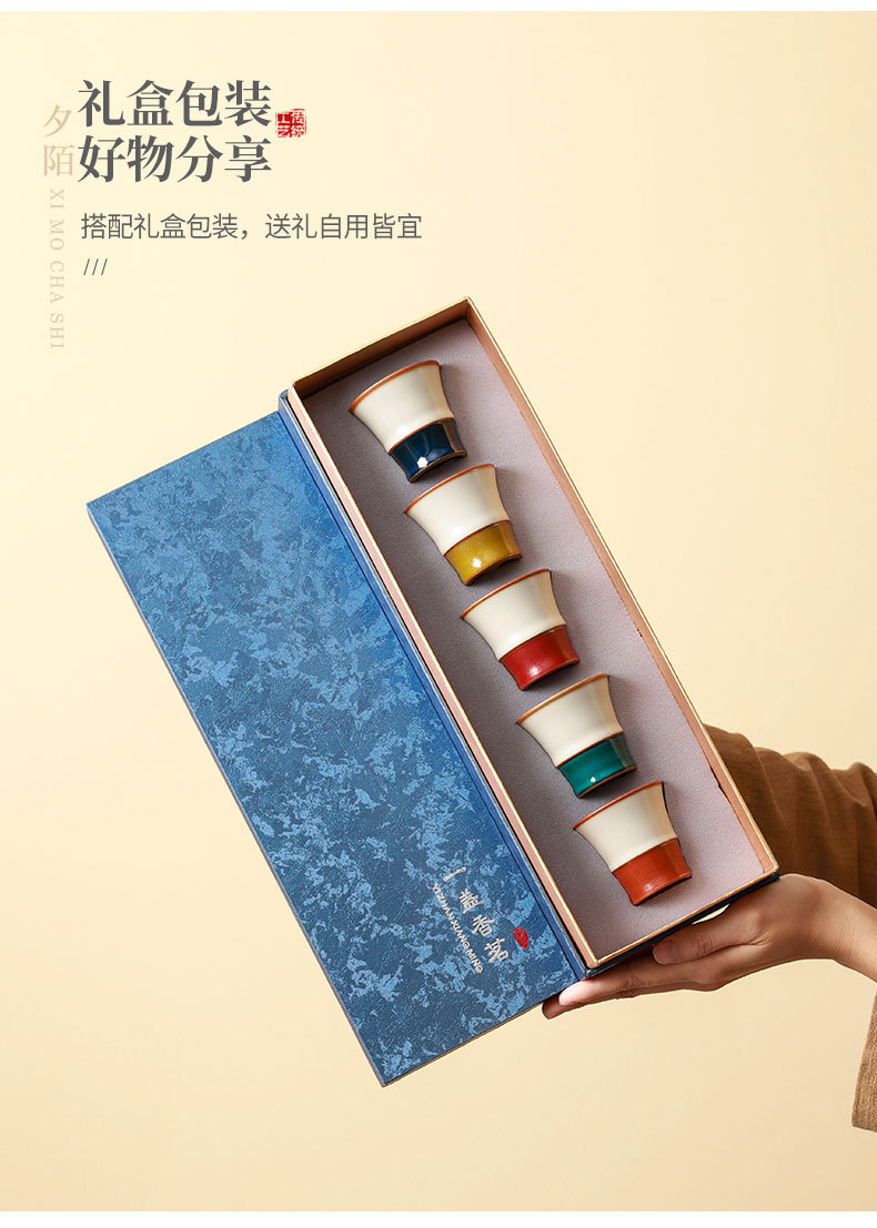 汝窑米黄竹节小茶杯陶瓷五行杯开片茶盏喝茶杯子套装生日礼物送礼