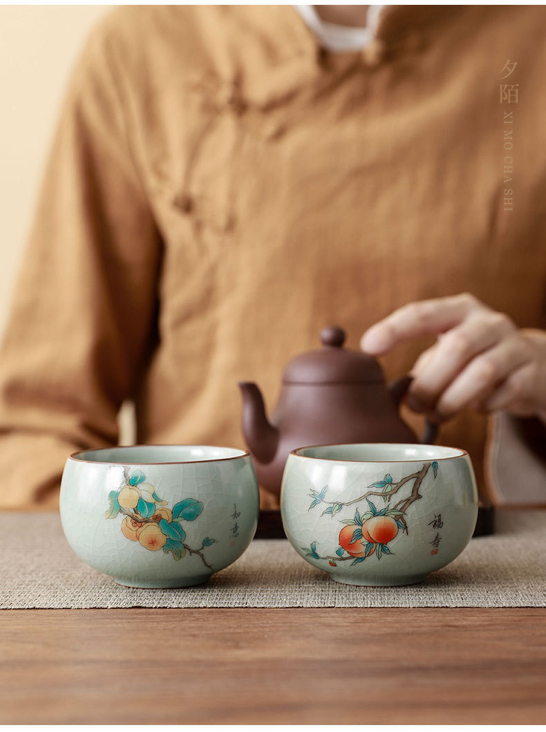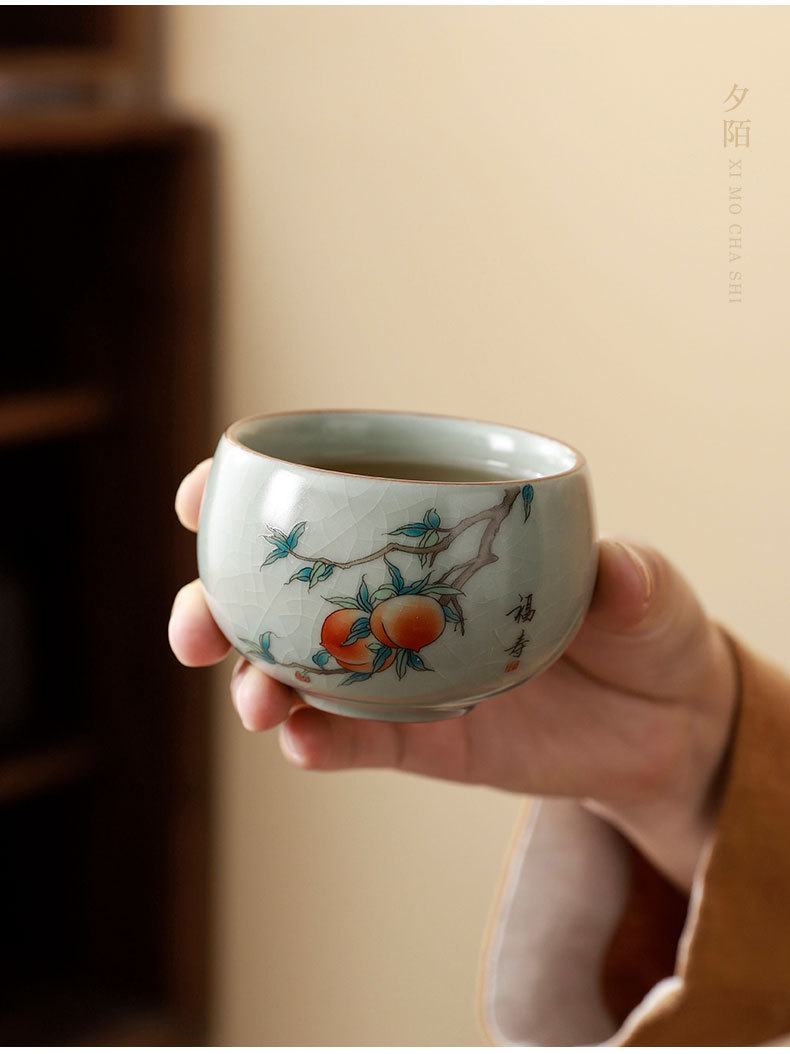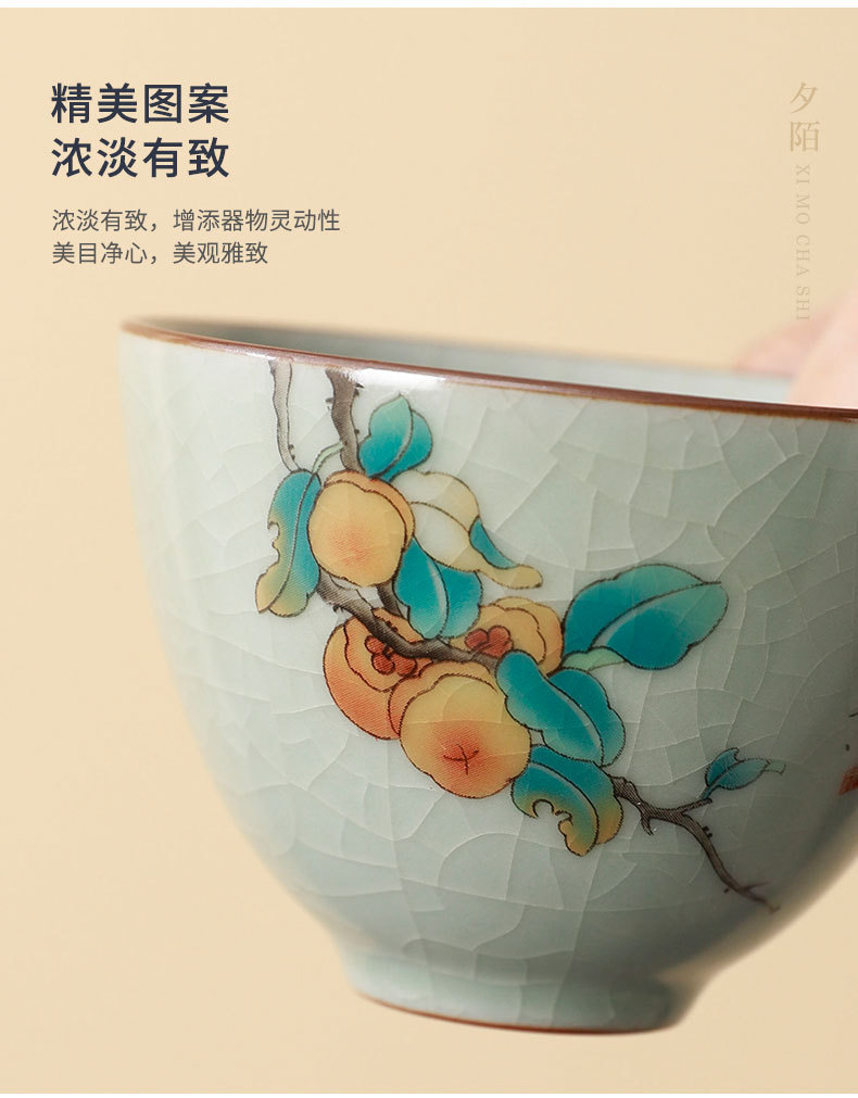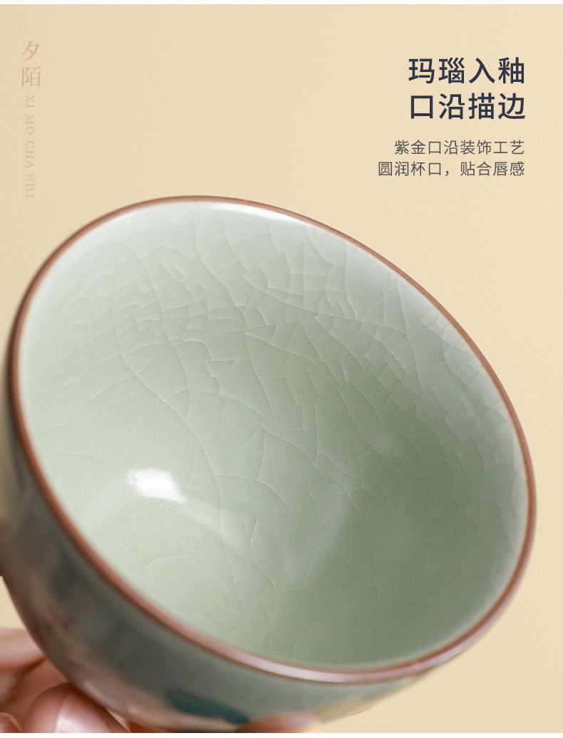 汝窑茶杯可养开片主人杯功夫茶具品茗杯国潮中秋礼物送客户伴手礼