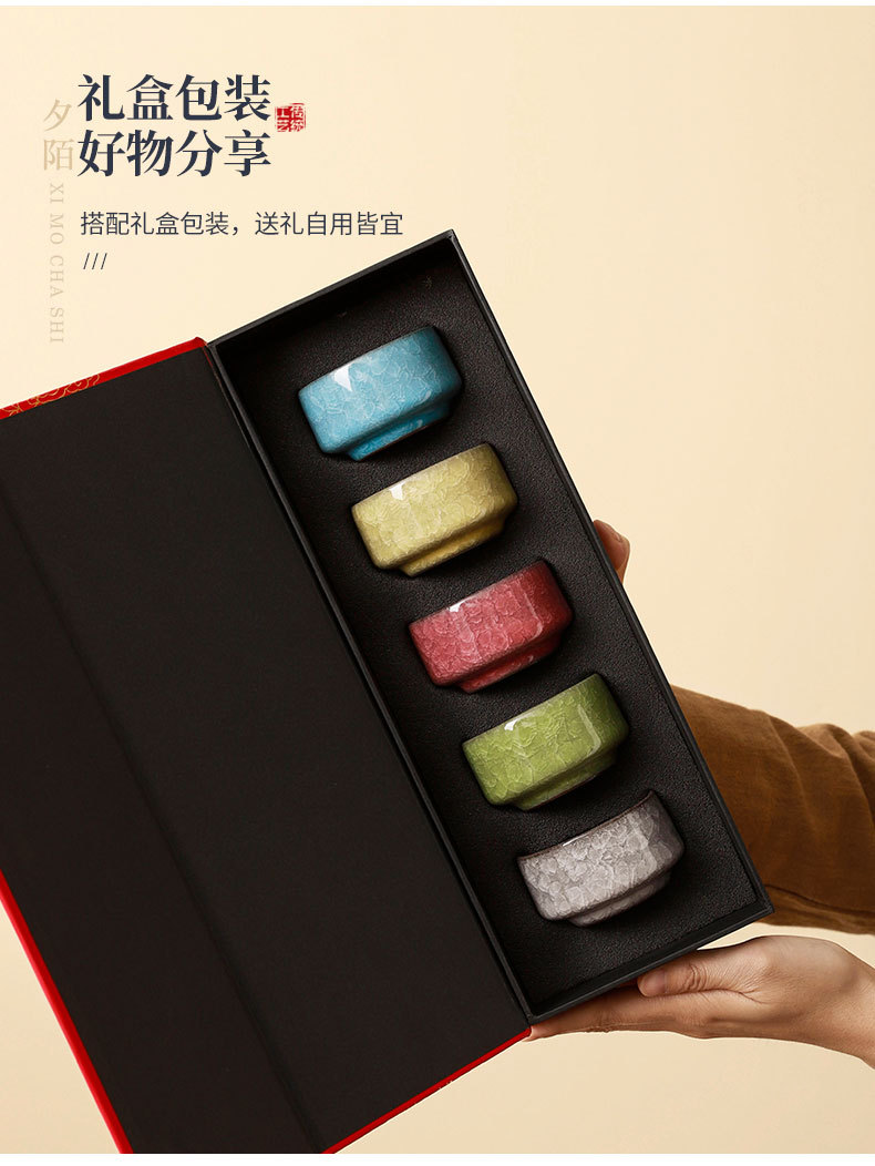 冰花茶盏套装五行茶杯故宫文创礼盒装冰裂纹品茗杯送礼可印logo