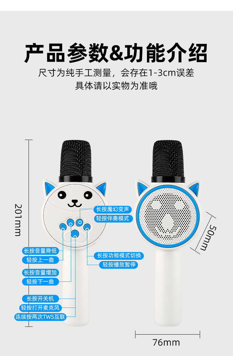 跨境儿童麦克风话筒MC881麦克风音响一体机无线蓝牙家用k歌麦克风