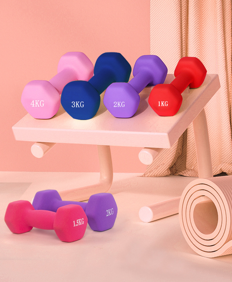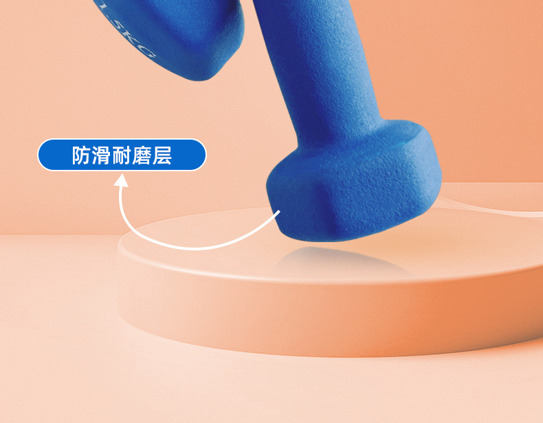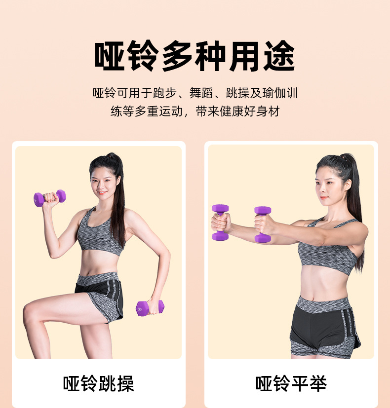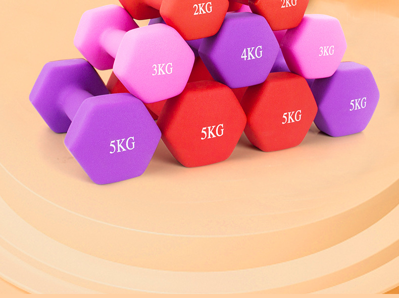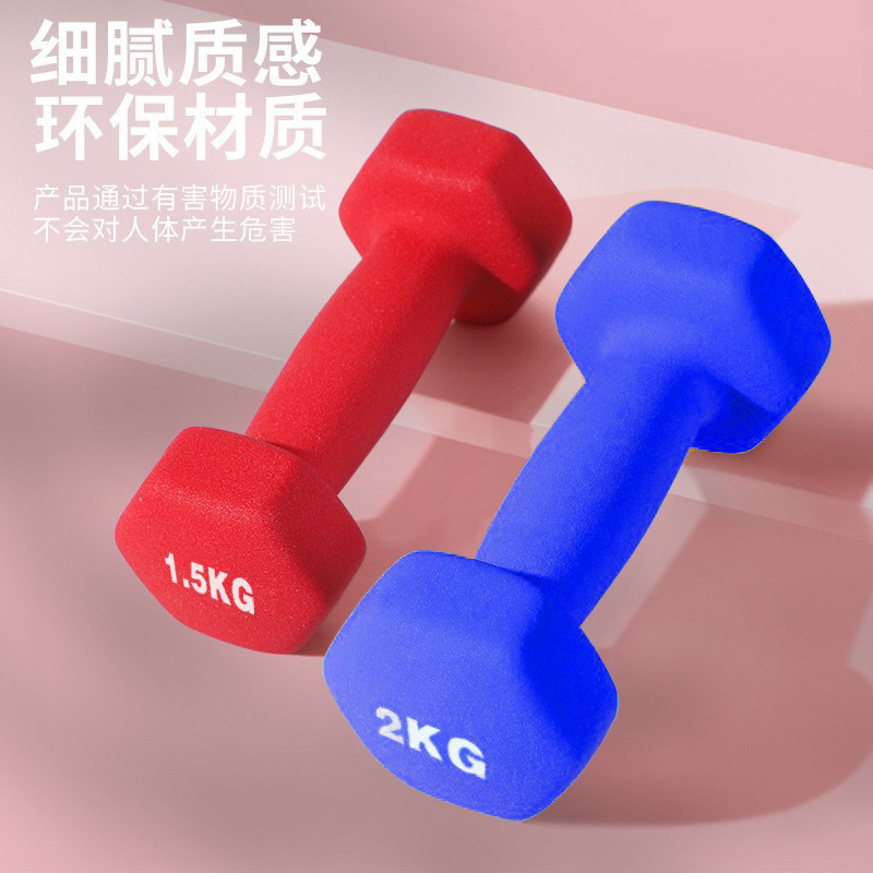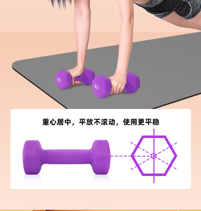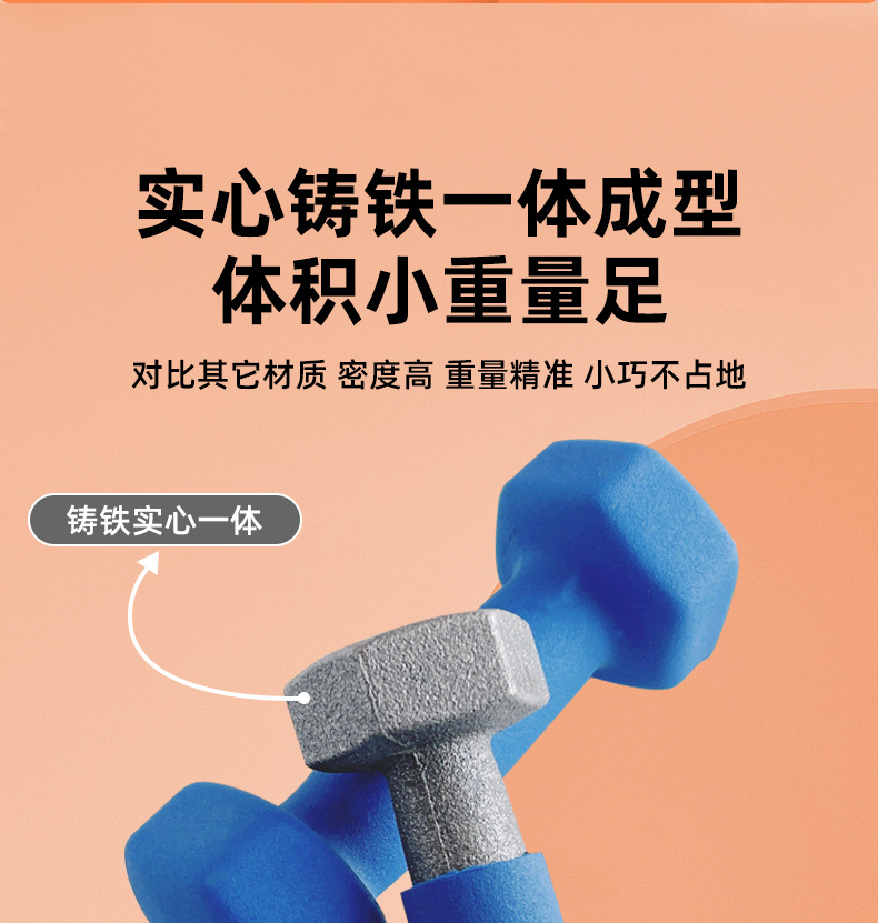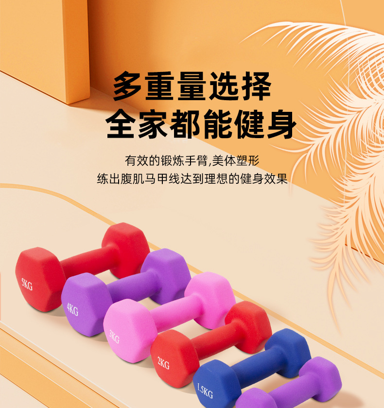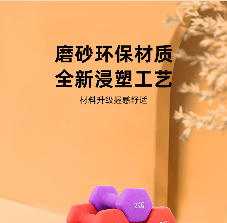 WT-JLS浸塑六角哑铃女士健身家用浸塑包胶哑铃实心铸铁哑铃