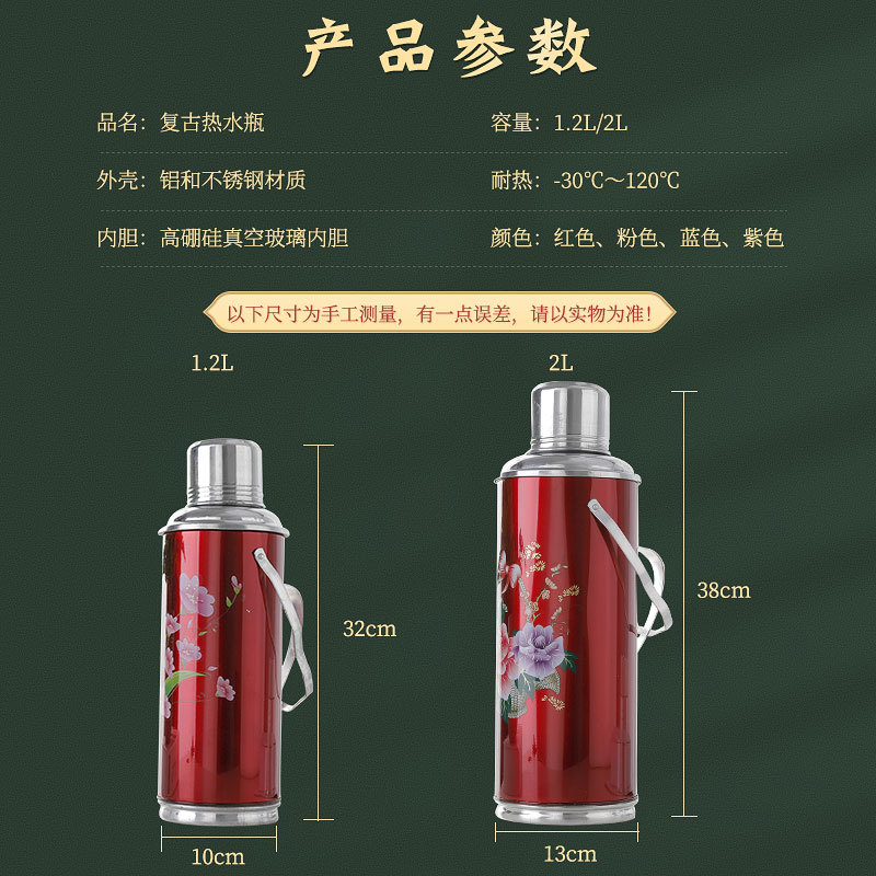复古玻璃内胆热水瓶 家用茶瓶热水壶暖瓶暖壶 手提马口铁保温壶