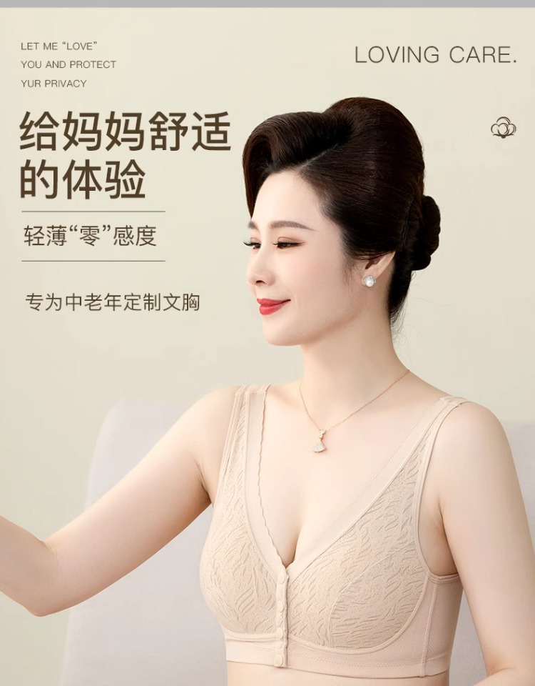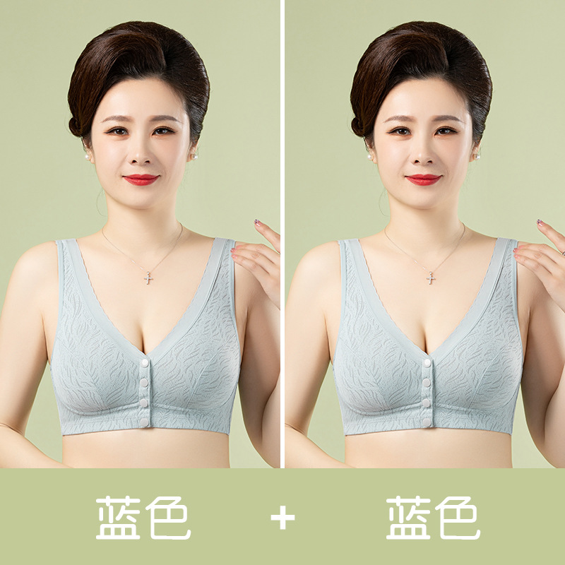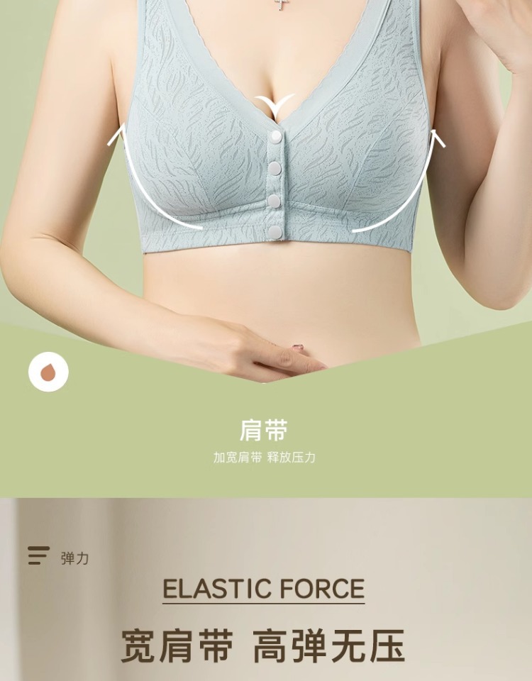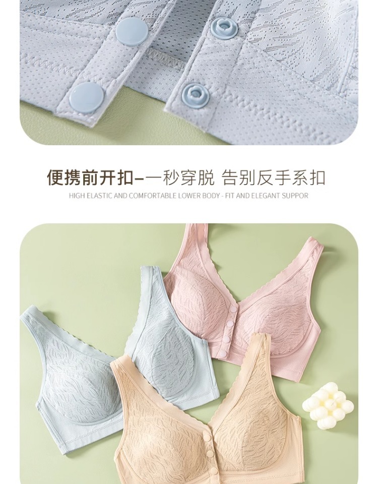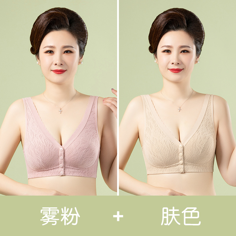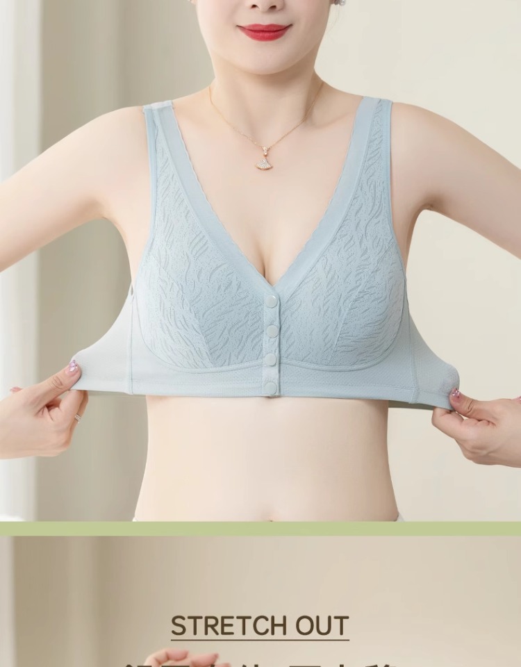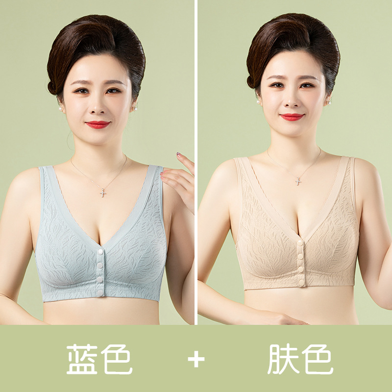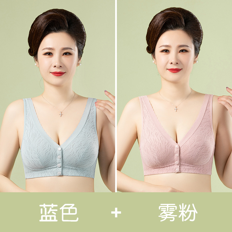 妈妈内衣女纯棉美背心式无钢圈聚拢中老年人妇女收副乳前扣文胸罩