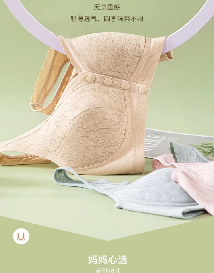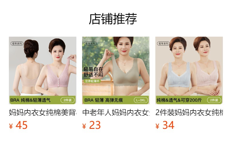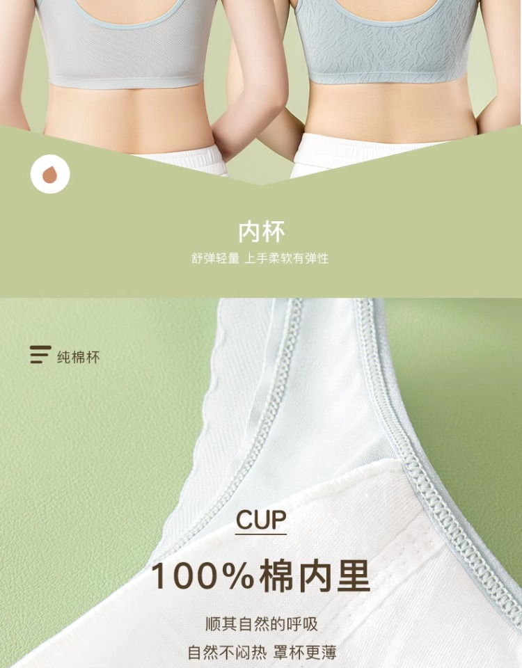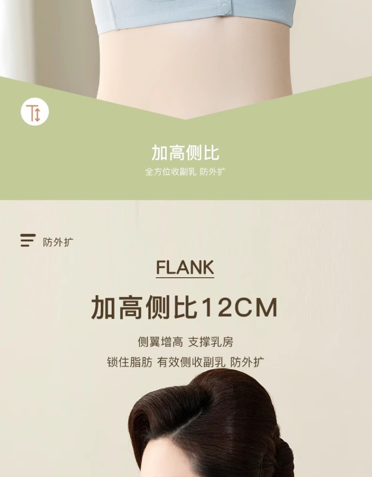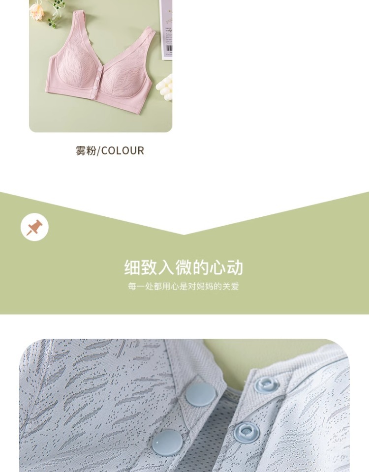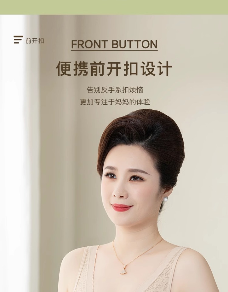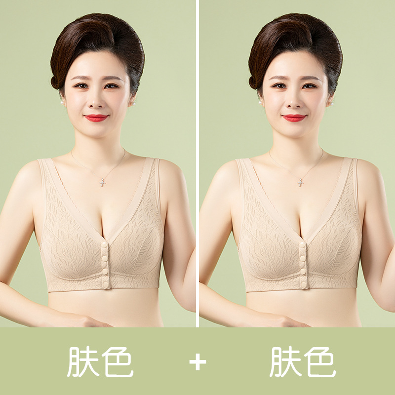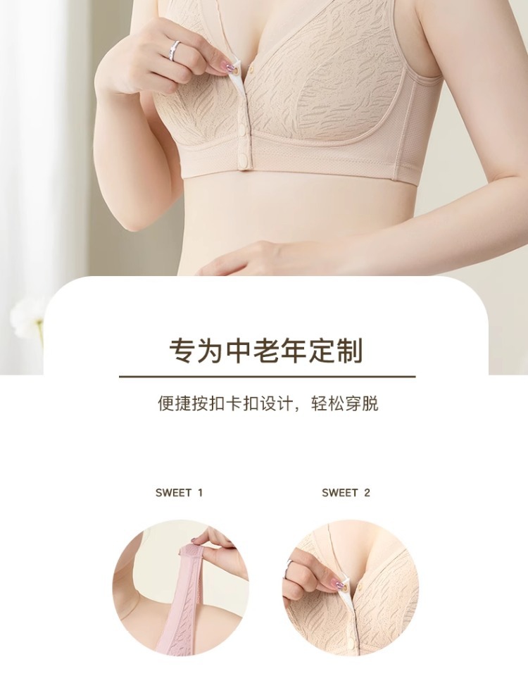 妈妈内衣女纯棉美背心式无钢圈聚拢中老年人妇女收副乳前扣文胸罩